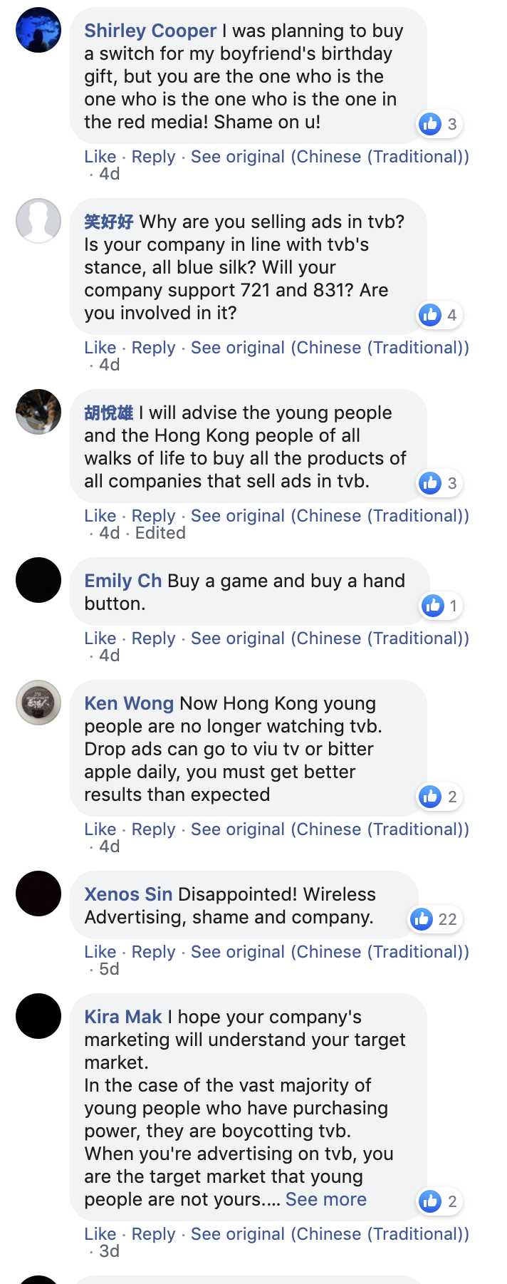 Pour les expatriés comme pour les intervenants extérieurs, la situation est délicate car ils sont scrutés à la loupe lorsqu'ils ne sont pas tout simplement sommés de choisir leur camp... C'est dans ce cadre que Nintendo est menacé de boycott par certains fans, remontés par le fait que la société japonaise continue, comme si de rien n'était, à faire de la publicité sur la chaîne de télé TVB, qui est considérée comme "la voix de Pékin". Nintendo aurait-il choisi son camps ?