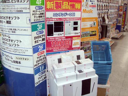 Enfin, voilà deux photos, la première nous montre la boite de la DSi, l'autre nous présente la DSi dans un magasin.