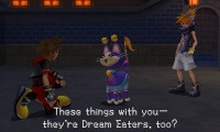 Plus le temps passe et plus la sortie de Kingdom Hearts 3D : Dream Drop Distance approche à grands pas ! Pour appâter un grand nombre de joueurs occidentaux, Square Enix diffuse de nouveaux visuels avec les dialogues en anglais, histoire qu'on comprenne de quoi peuvent bien parler les personnages du jeu. Aujourd'hui, le tout concerne la Ville de Traverse avec les fameux protagonistes tirés de The World Ends With You, la majorité d'entre eux ont d'ailleurs droit à des artworks. En ce qui concerne les étranges Avale-Rêves visibles dans le tas, ils font partie des bonus de pré-commande du soft, ils seront disponibles sous la forme de cartes Réalité Augmentée. L'autre bonus, c'est la possibilité de voir les monstres sous tous les angles possibles.