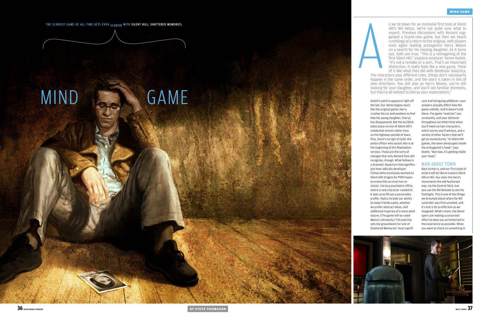 Ce remake du premier volet de la série vous proposera quelques changements par rapport à la version originale, bien que vous contrôlerez toujours Harry Mason, homme qui partira à la recherche de sa fille dans les rues sombres de Silent Hill. La Wiimote sera de la partie pour chercher des objets ou encore imiter une lampe ou un téléphone portable. Vous pourrez également vous munir d'un GPS qui servira de carte et d'appareil photo, choses qui pourraient être très utiles dans votre fuite.