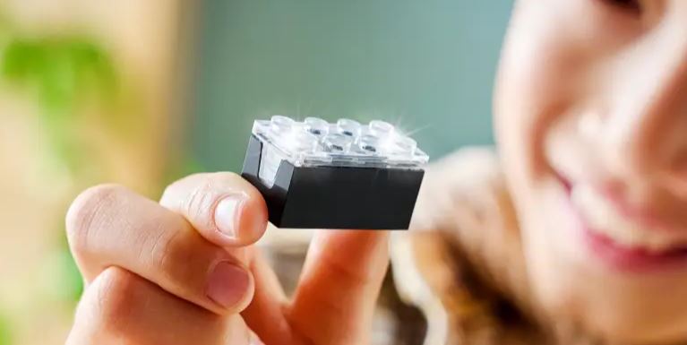 - La SMART Brique. Une brique LEGO 2x4 qui reconnaît les SMART Tags et les SMART Minifigurines. Elle est également dotée d’un accéléromètre intégré qui détecte la façon dont elle se déplace dans l’air et permet de donner vie au jeu de manière assez incroyable.