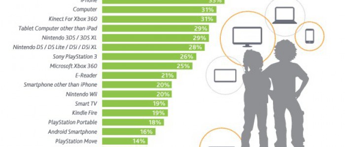 Nous ne pouvons que constater la montée en puissance des produits de la firme pommée chez les enfants américains. Alors, préférence nationale oblige ? Pas si sûr lorsqu'on voit l'intérêt pour les machines de Microsoft. On remarquera tout de même que la Wii U s'est vite imposée comme un objet de convoitise face aux autres consoles : PS3 à 26% et Xbox360 à 25%. L'effet lancement d'une nouvelle console et une bonne campagne de communication aux USA y seraient pour quelque chose ou est-ce l'engouement pour le format tablette qui booste les chiffres chez les plus jeunes ?