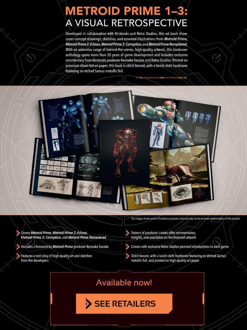 Ce recueil visuel célèbre l'art de la série Metroid Prime couvrant le jeu original, ses deux suites et la version remasterisée, avec des contributions exclusives des développeurs du jeu,