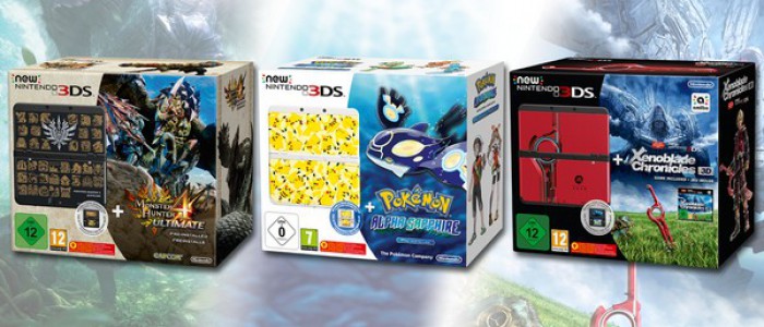 Nintendo annonce la sortie exclusive en Europe de trois nouveaux packs New 3DS "classiques" comprenant chacun un exemplaire du jeu (préinstallés pour les deux premiers), les coques extérieures mais aussi leur thèmes accordés. Ainsi dès le 26 juin vous pourrez acquérir un pack aux couleurs et avec Monster Hunter 4 Ultimate, un autre concernant Pokémon Saphir Alpha et un dernier avec Xenoblade Chronicles 3D. Manque à l'appel un pack avec The Legend of Zelda : Majora's Mask 3D dont les coques sont vraiment magnifiques mais il ne fallait probablement pas (encore) faire de l'ombre au pack collector New 3DS XL. Reste maintenant à savoir le prix de ces packs pour savoir s'ils valent la peine ou non.
