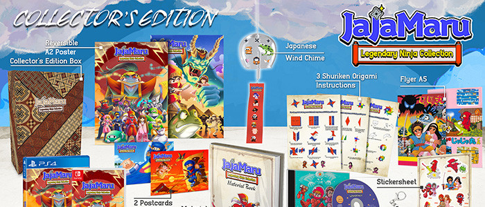 Pour les collectionneurs qui aimeraient tenir tous ces jeux JaJaMaru Ninja dans leurs mains, Strictly Limited Games créera des éditions exclusives et limitées de JaJaMaru : Legendary Ninja Collection. Outre tous les titres, cette collection, disponible exclusivement via Strictly Limited Games, comprendra plusieurs objets de collection physiques qui ne peuvent être achetés nulle part ailleurs. Les précommandes débutent le 21 août à minuit sur leur boutique en ligne.