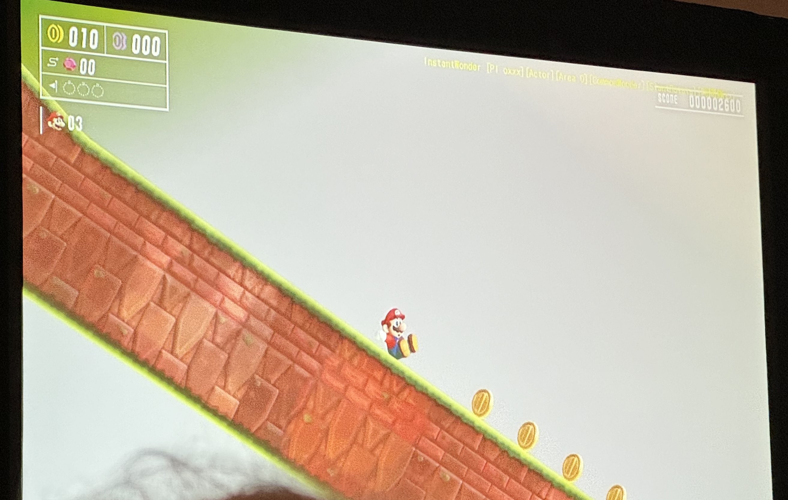 A l'occasion de la Game Developers Conference (GDC) qui s'est tenue du 18 au 22 mars à San Francisco, Nintendo a organisé un panel autour du développement du jeu. Pour l'occasion, les développeurs ont dévoilé du contenu finalement non utilisé dans le titre final. On découvrir ainsi, grâce à Chris Kohler de Llamasoft! qui était présent et a publié des vidéos et des images sur X, de nombreux effets "prodigieux" inédits, finalement non intégrés dans le jeu.
