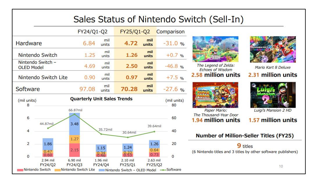 Les ventes des nouveaux titres tels que Paper Mario : La Porte Millénaire, Luigiʼs Mansion 2 HD et The Legend of Zelda : Echoes of Wisdom qui sont sortis au cours de l'exercice, ont progressé de façon constante.