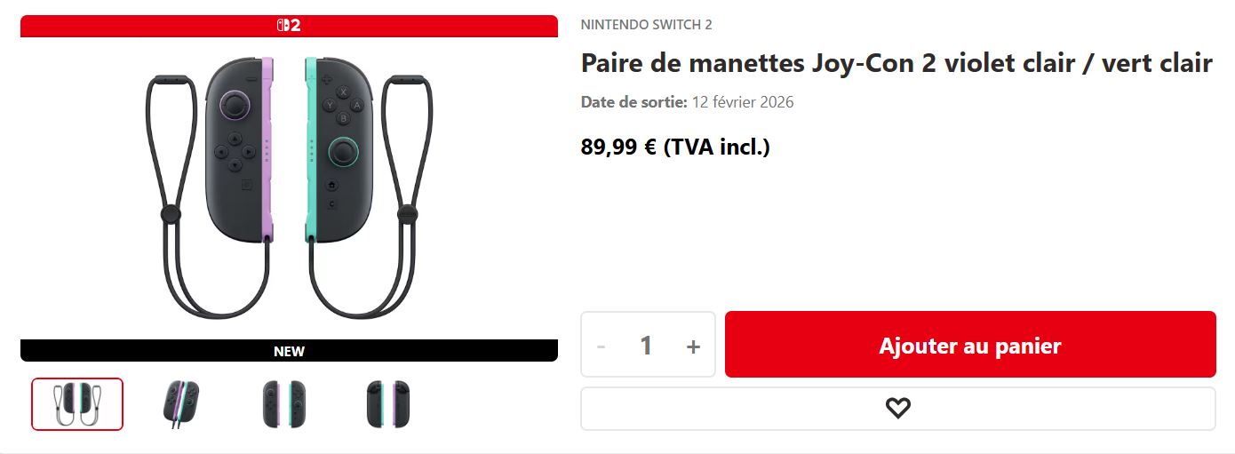 Cependant, dès aujourd'hui, une nouvelle paire de Joy-Con 2 "colorée" est disponible à la vente. Les possesseurs de la nouvelle console pourront donc désormais varier les plaisirs avec les Joy-Con 2 Violet clair/Vert clair, en réalité, des Joy-Con toujours noirs mais avec la tranche et la dragonne colorées en violet et en vert. Ils sont disponible à 89,99€ sur le store de Nintendo.