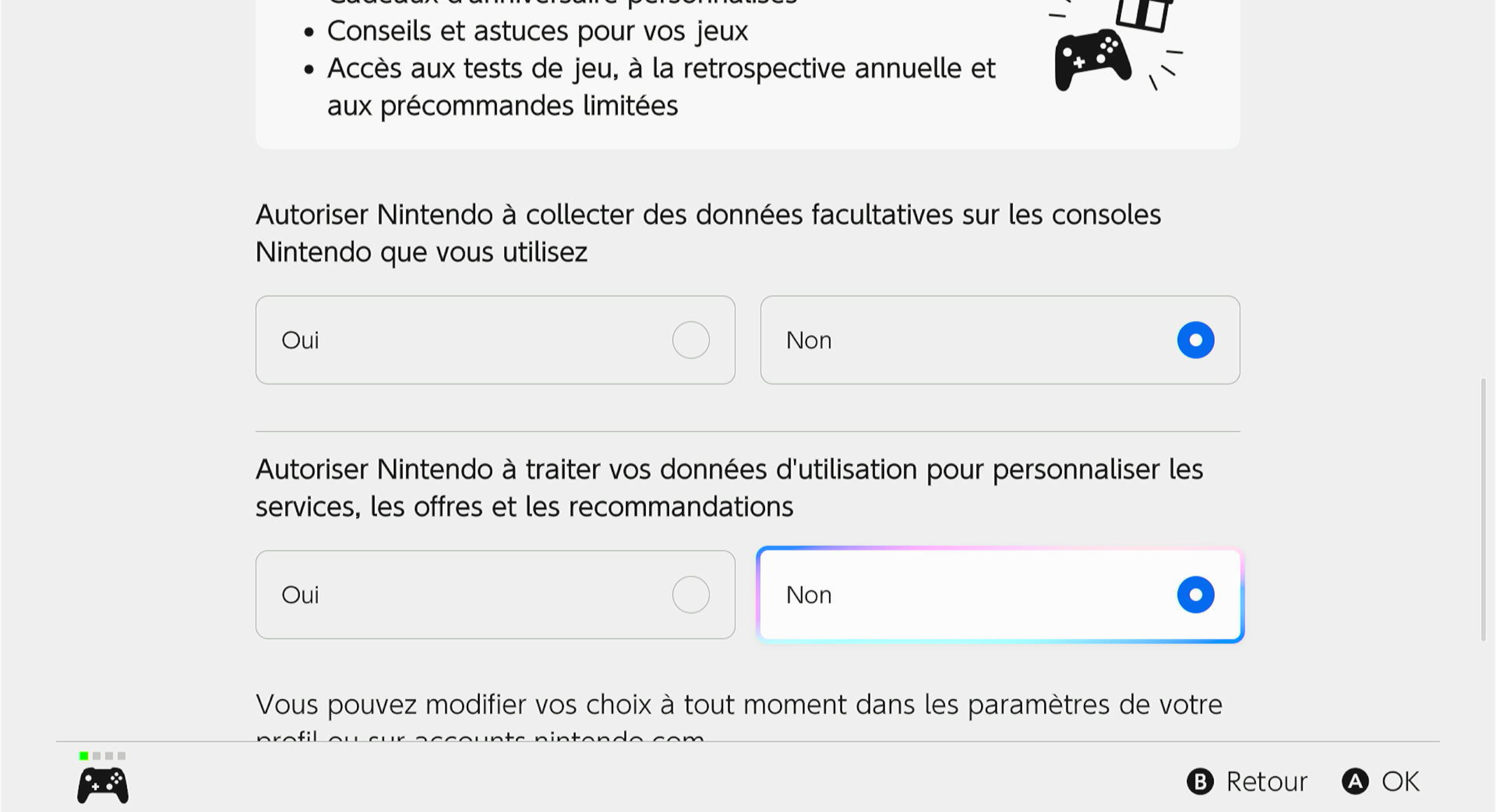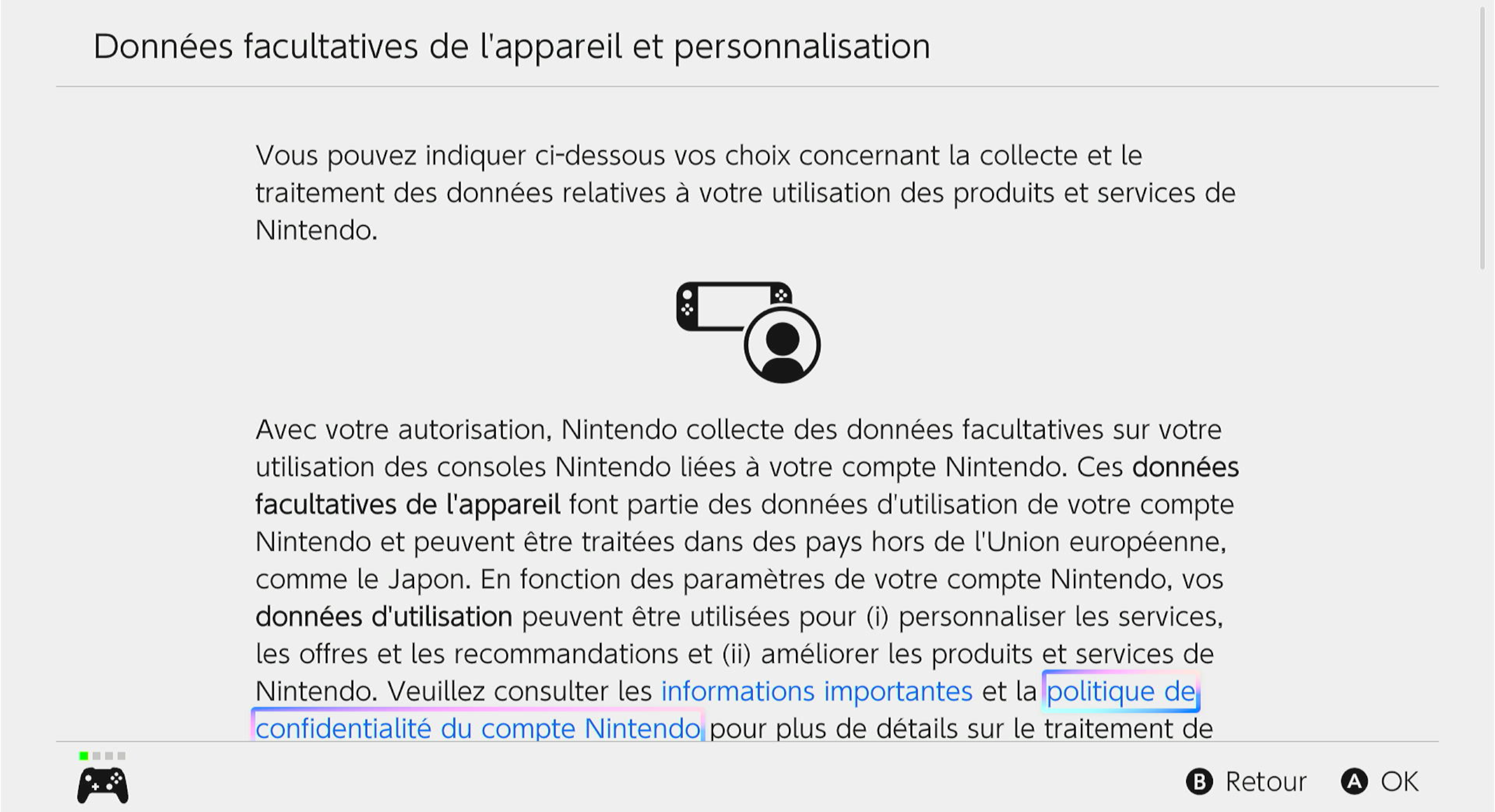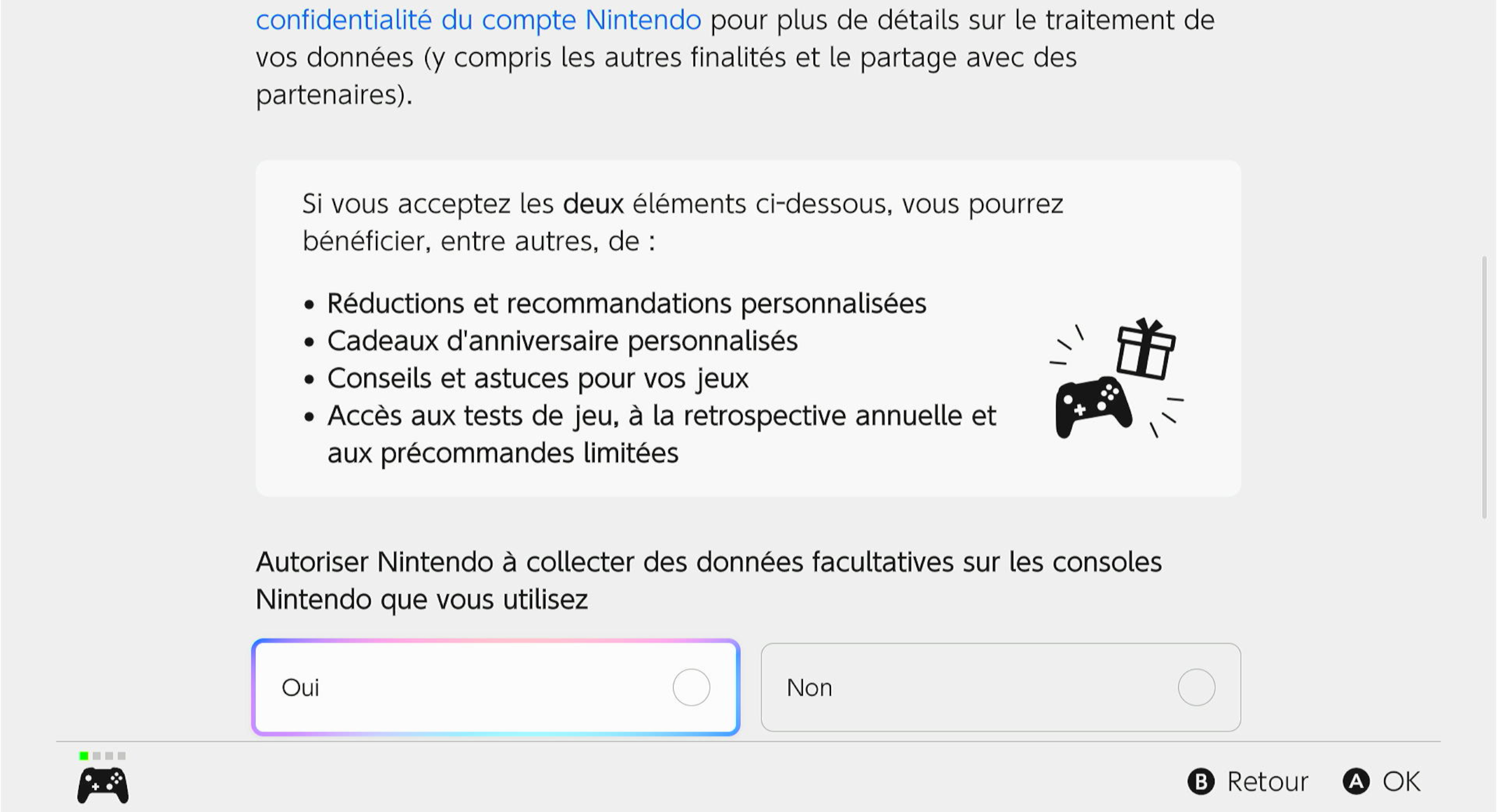 On note aussi que Nintendo demande une autorisation pour collecter des données qui offre en échange quelques "récompenses" :