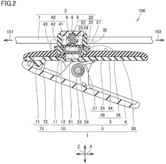 En fait, il s'agirait d'une sorte de pince avec une cavité centrale permettant de fixer et de faire pivoter un support autour d'un point de connexion magnétique.