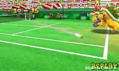 Sans nouvelle depuis le mois dernier lors de son annonce à la conférence de Nintendo, Mario Tennis 3D revient en cette soirée avec quelques images issues de chez nos confrères allemands de Nintendo Online. D'accord, il y en a très peu mais c'est déjà un petit pas en avant surtout que l'on ne sait rien sur les capcités et le contenu du titre de Nintendo. Alors il faudra se contenter de ce que nous avons sous la main.