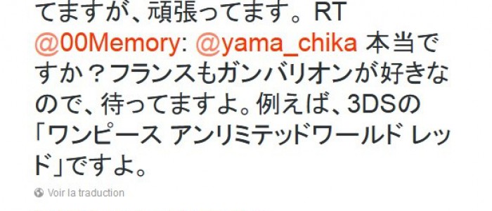 Le jeu One Piece : Unlimited World Red refait parler de lui aujourd'hui, alors qu'il est sorti depuis le 21 novembre 2013 au pays du soleil levant sur les consoles Nintendo 3DS japonaises, celui-ci n'est pour l'instant jamais sorti en Europe. Le jeu développé par Ganbarion refait surface sur Twitter par l'intermédiaire de Yamakura Chikako, laquelle est productrice de Pandora's Tower sorti sur Wii. Elle laisse présager que l'espoir de voir débarquer le soft sur le continent européen n'est pas encore perdu.