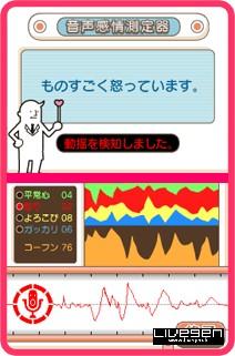 Ce concept devrait donc être mis à rude épreuve dans Kokoro Scan qui vous proposera d'endosser le rôle d'un acteur et de parler à votre DS sur l'intonation qu'elle vous aura préalablement soumise.