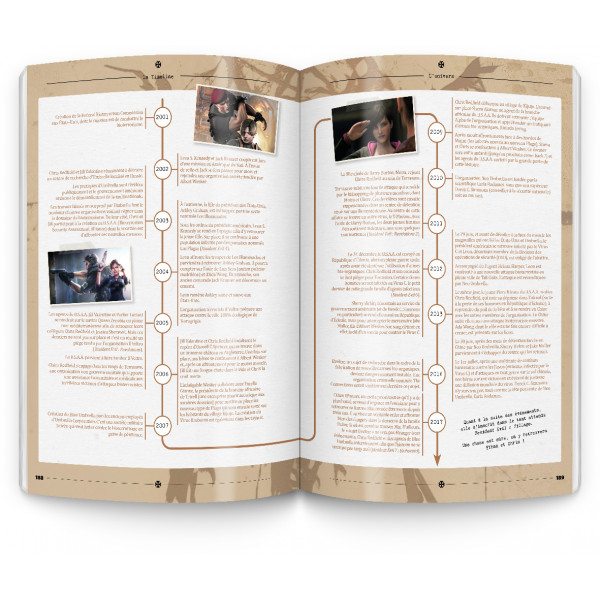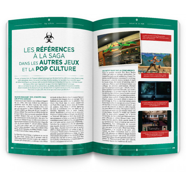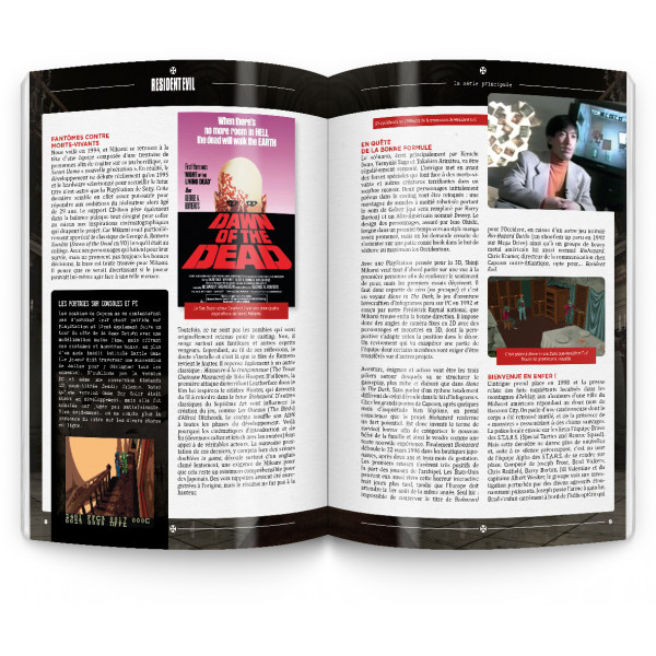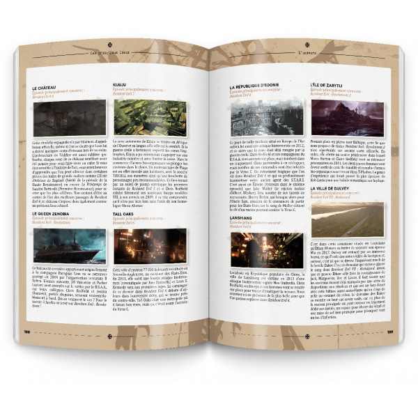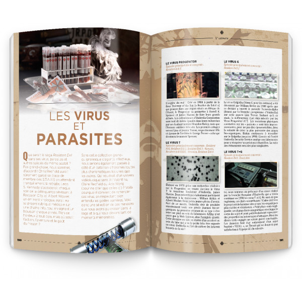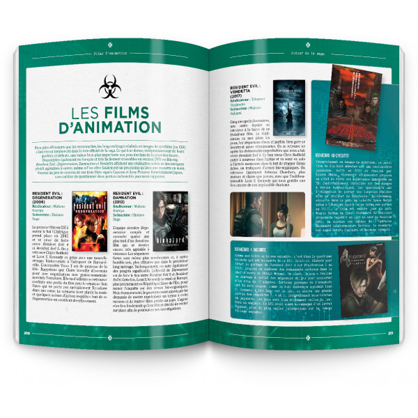 Fiches techniques détaillées des personnages, présentation d’une timeline complète, recensement des virus et parasites de la série, présentation des lieux emblématiques de la licence, scènes emblématiques, tout est là pour satisfaire la soif de culture des passionnés de la licence. Bruno Rocca est même allé plus loin en sortant de l’univers du jeu vidéo pour revenir brièvement sur les films réalisés par Paul W. S. Anderson, les différents films d’animation, et même diverses œuvres littéraires.