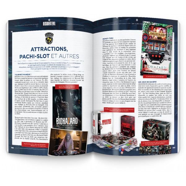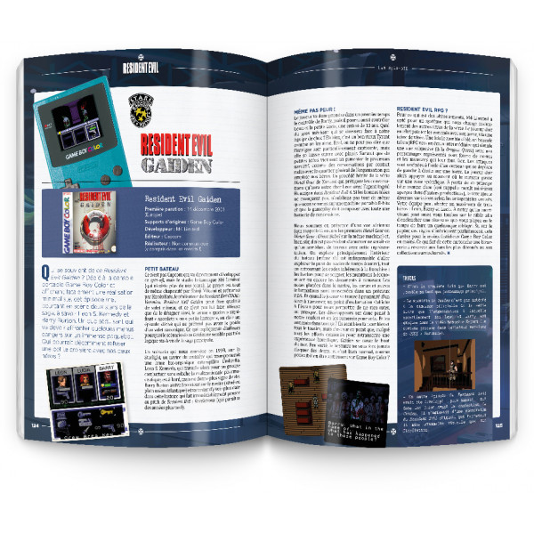Outre les épisodes canons, Generation Resident Evil fait également un focus intéressant sur les nombreux spin-off commandés par Capcom pour meubler entre deux épisodes principaux. On retiendra entre-autres RE Survivor, RE Gaiden sur Game Boy Color, ou encore RE The Mercenaries 3D paru sur 3DS. L’ouvrage fait même un point sur les jeux mobiles de la licence et Pachislot sortis uniquement au Japon, ainsi que les jeux de société.