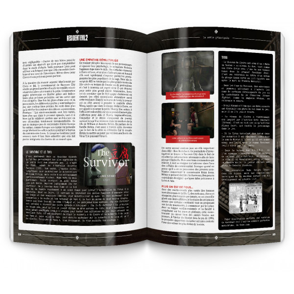A travers plus de 200 pages, l’auteur nous nous livre anecdotes, informations de développement et un résumé du scénario de l’ensemble des jeux estampillés Resident Evil. La première partie du livre se concentre ainsi sur Resident Evil premier du nom paru sur Playstation, jusqu’au tout récent Resident Evil VIII / Village. Tout en n’omettant pas de nous parler des épisodes que l’on a pu apprécier sur Gamecube comme le remake du premier opus Resident Evil Rebirth, Resident Evil 0 ou encore le cultissime Resident Evil 4.