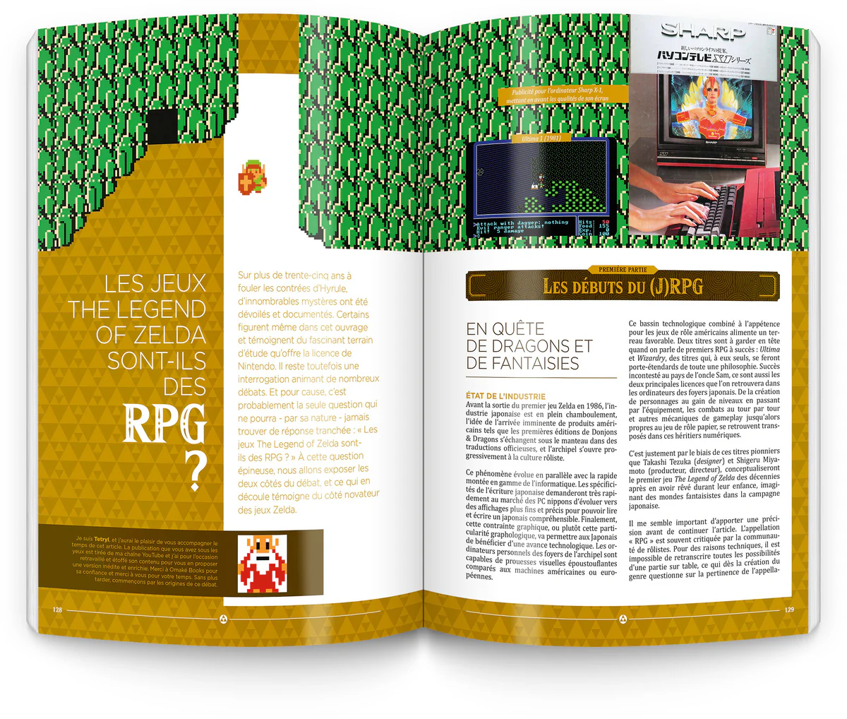 De replonger dans toute une époque, une période charnière pour Nintendo avec des consoles mythiques comme la Nintendo GameCube ou encore la très évidente Nintendo 64. Bien évidemment, vous retrouverez aussi toute une analyse de la saga à la fin de l'ouvrage avec un chapitre entier dédié à l'épineuse question "Les Zelda sont-ils des RPG ?", vaste sujet qui trouve au fil des pages des éléments de réponse et des clefs de décryptages sous la plume de Tetryl (vidéaste spécialisé sur la question et sur ce genre).
