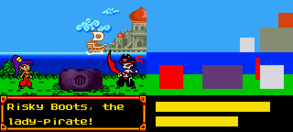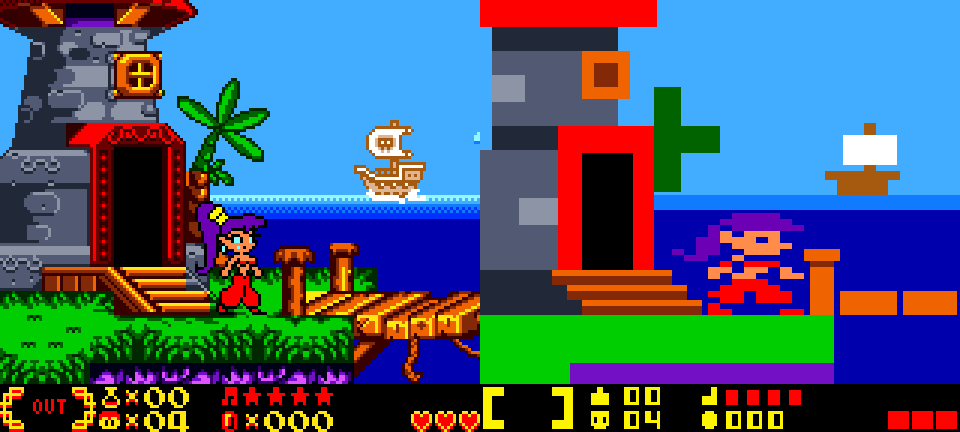 - Shantae: Demakeified !: WayForward l'affirme, les remakes c'est démodé. Ce que veulent les jeunes aujourd'hui ce sont, des "demake". Plutôt que de refaire le Shantae original (sorti en 2002 sur Game Boy Color) avec de meilleurs graphismes, le studio promet, au contraire, de "défaire" le jeu en le proposant avec de nouveaux visuels moins bons, des animations réduites et de l'audio compressé (voir ici) ! En prime, un magnifique mode rétro à débloquer avec tous les personnages en forme de gros carrés colorés (voir là). Juste magnifique.Voir le post de WayForward ici et images ci-dessous.