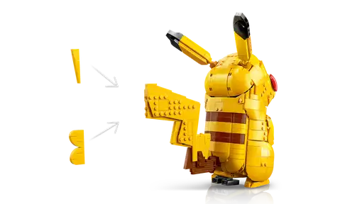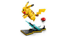 Composé de 2 050 pièces, ce set dispose d’une base noire en forme de paratonnerre, d’où jaillissent des éclairs lorsque Pikachu surgit de sa Poké Ball. Le chiffre 25 y est également affiché, clin d’œil à son numéro dans le Pokédex.