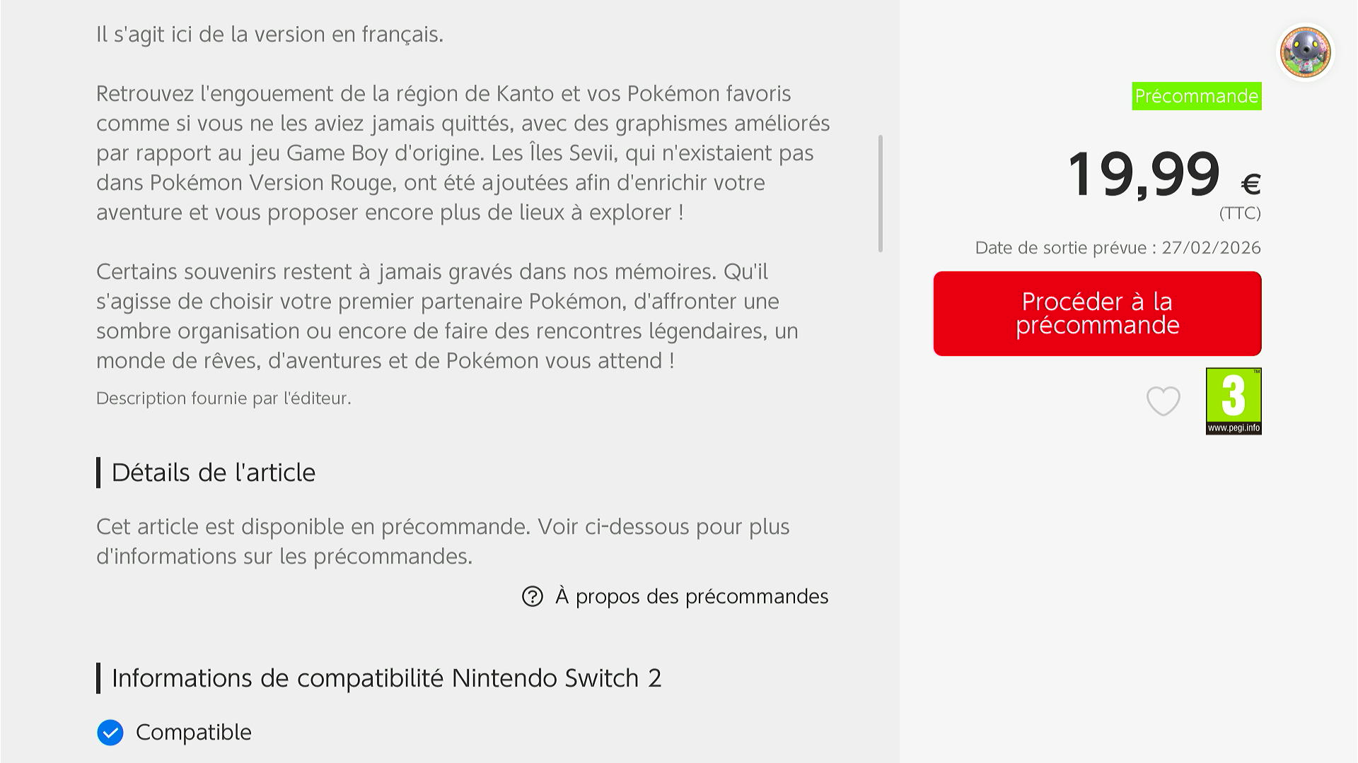 Pokémon Rouge Feu et Pokémon Vert Feuille seront disponibles le 27 février 2026 sur l'eShop de la Nintendo Switch. Comme toujours, n'hésitez pas à nous dire ce que vous en pensez en commentaires.