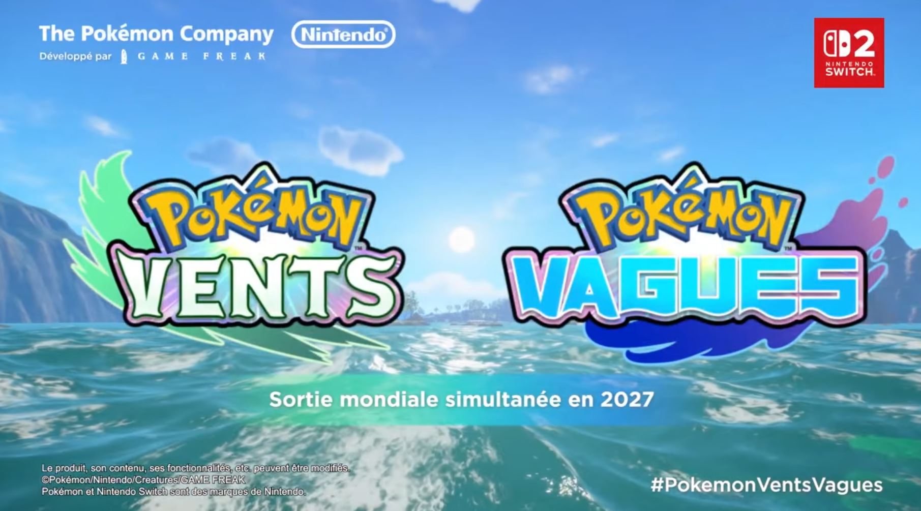Pokémon Vents et Pokémon Vagues débarqueront simultanément partout dans le monde en 2027.