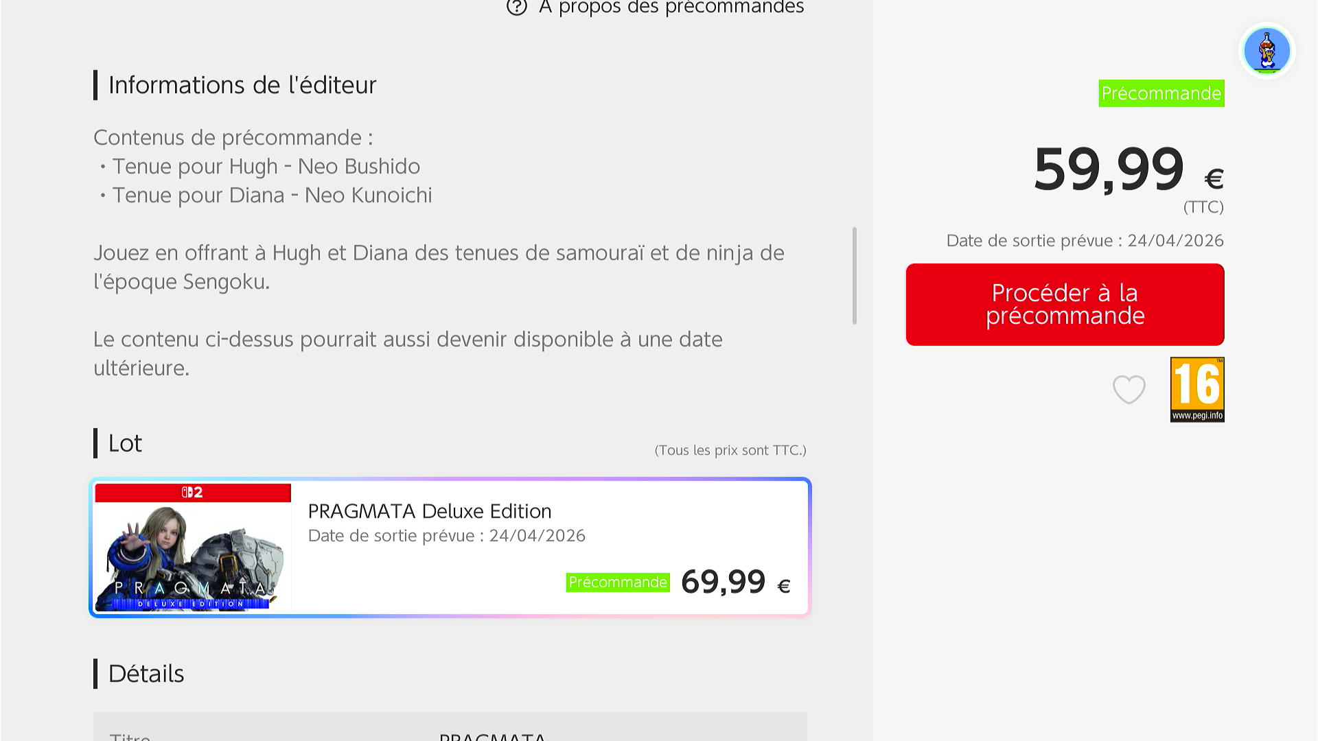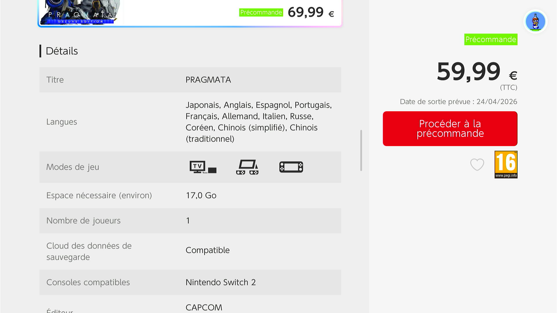 PRAGMATA : le nouveau jeu de Capcom annoncé sur Nintendo Switch 2 - Prix, poids et détails