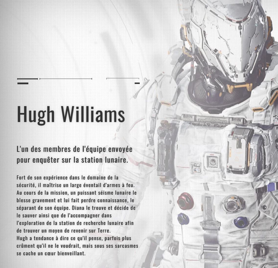 Cependant, un énorme séisme lunaire se produit peu de temps après son arrivée.Hugh Williams, séparé de son équipe et inconscient après avoir subi de graves blessures, est découvert par un mystérieux androïde aux allures de jeune fille.