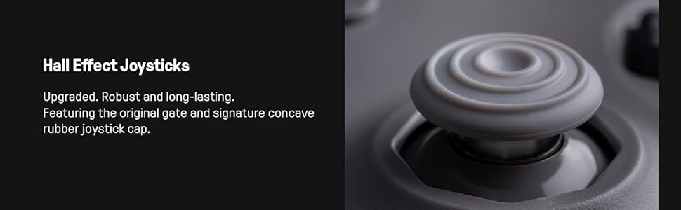 La manette Bluetooth 8BitDo 64 fait entrer les joueurs d'aujourd'hui dans l'ère du 64 bits en intégrant des joysticks à effet Hall avec des capteurs électromagnétiques qui éliminent le risque de dérive et garantissent la durabilité. Ceci est renforcé par un anneau métallique conçu pour résister à une utilisation intensive tout en conservant des mouvements fluides et précis. La manette a été méticuleusement développée pour offrir une expérience fluide avec la bibliothèque Nintendo® Switch™ Online. Elle présente une disposition qui respecte la géométrie d'origine tout en intégrant des fonctionnalités modernes essentielles telles que :
