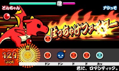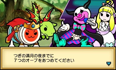 Tout comme la DS à son époque, la 3DS commence à se lotir de plusieurs jeux de rythme, merci à son double écran dont un tactile qui permettent la prolifération du genre sur la plateforme. Namco Bandai s'empresse donc d'y amener sa série Taiko dans un épisode appelé Taiko Drum Master : Little Dragon and the Mysterious Orb. La particularité de cet épisode est de proposer une sorte de mode aventure à la RPG, vous demandant d'affronter de multiples ennemis à l'aide d'une bonne rythmique. Un principe qui fait évidemment écho au Theatrhythm Final Fantasy de Square-Enix, qui base son originalité sur le même concept. Vous devrez dans celui-ci récupérer sept orbes disséminées dans sept contrées différentes, chacune conférant à votre petit dragon un pouvoir spécial vous aidant dans les combats.