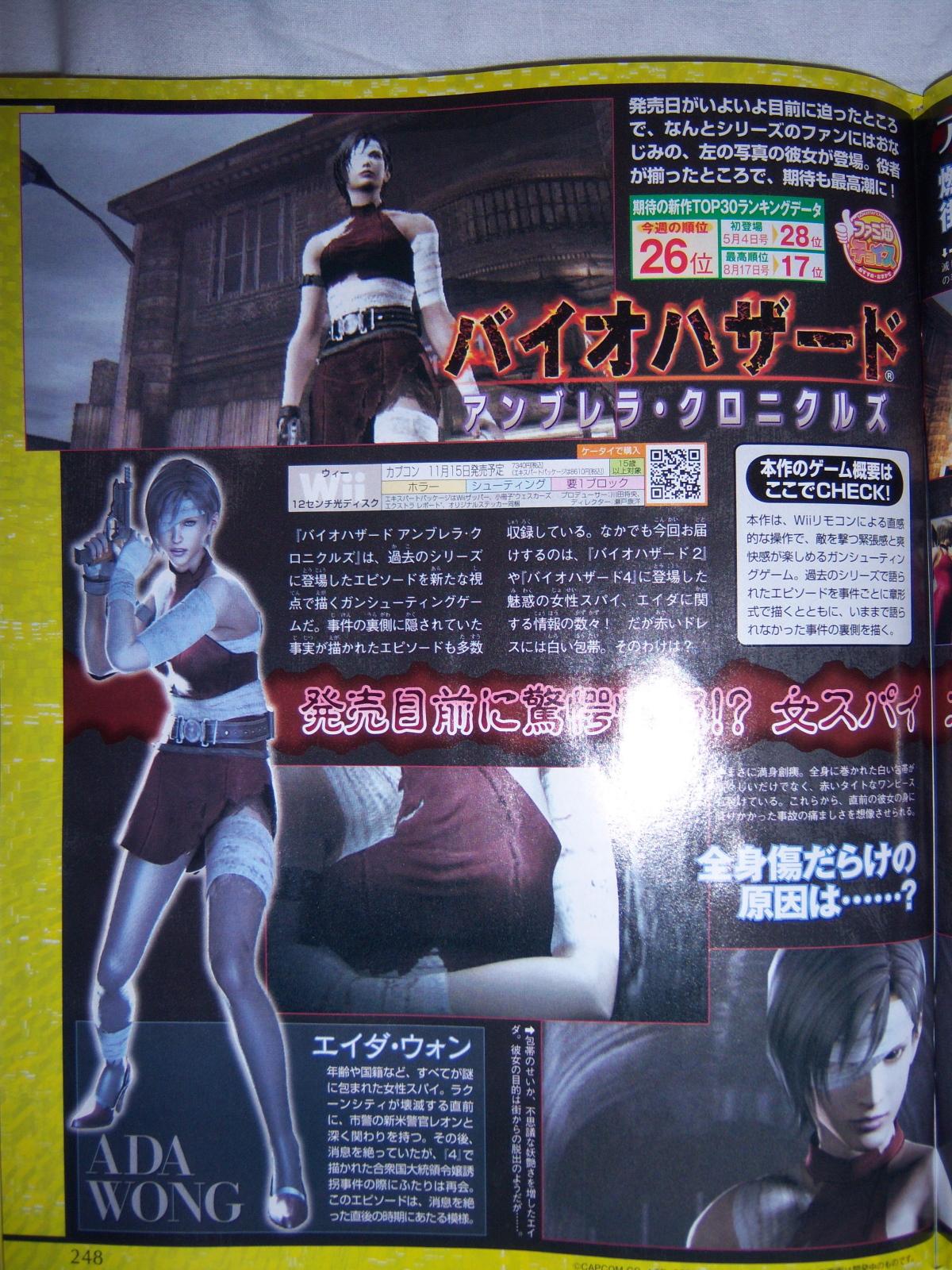 Grâce au très célèbre magazine japonais Famitsu, nous pouvons admirer la belle et bandée ( avec des bandes, petits pervers ) Ada Wong qui fuit Raccoon City zombifiée comme il se doit dans un des tous nouveaux scénarios du Rail-Shooter horrifique de Capcom, Resident Evil : The Umbrella Chronicles ! Ouf !