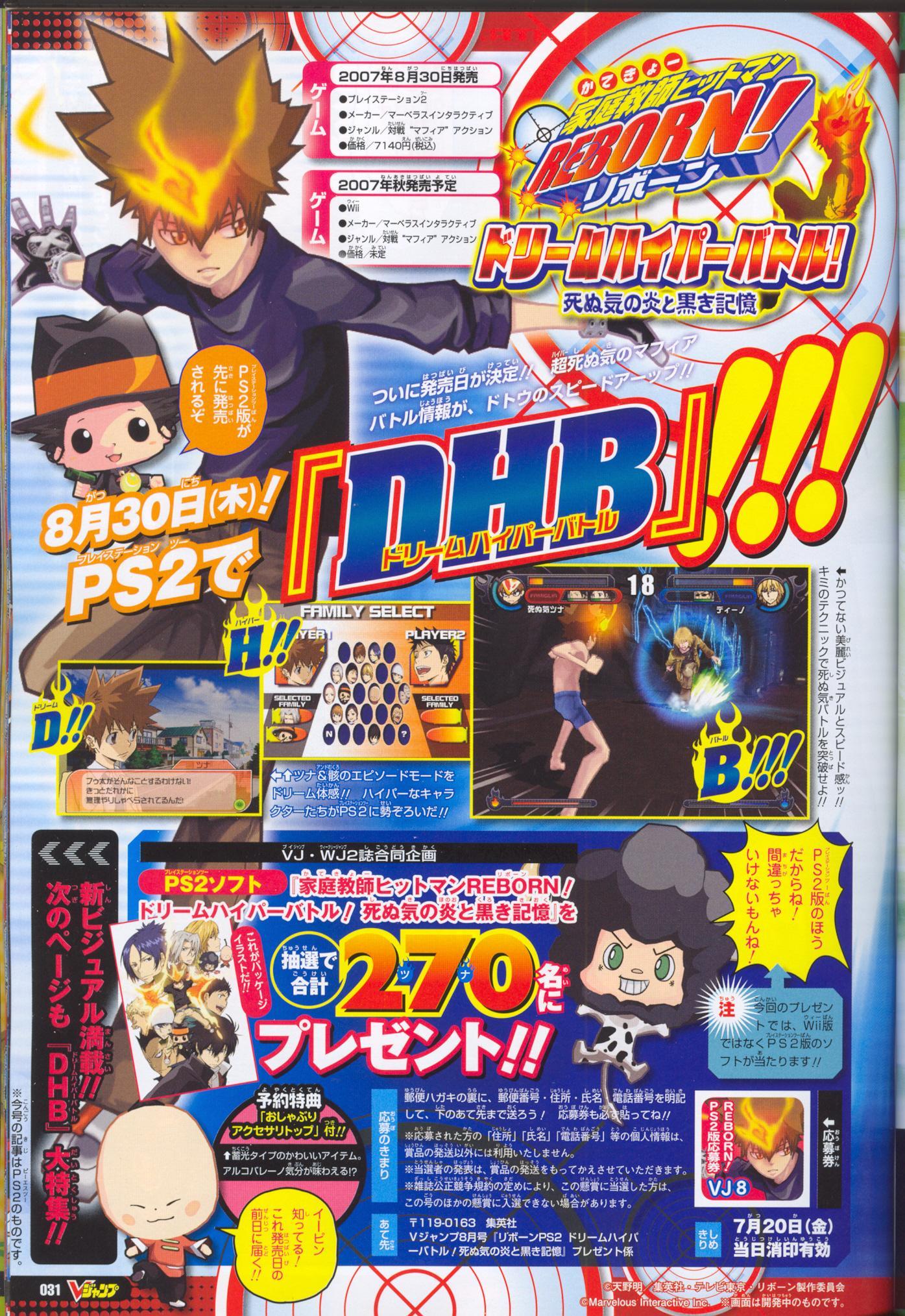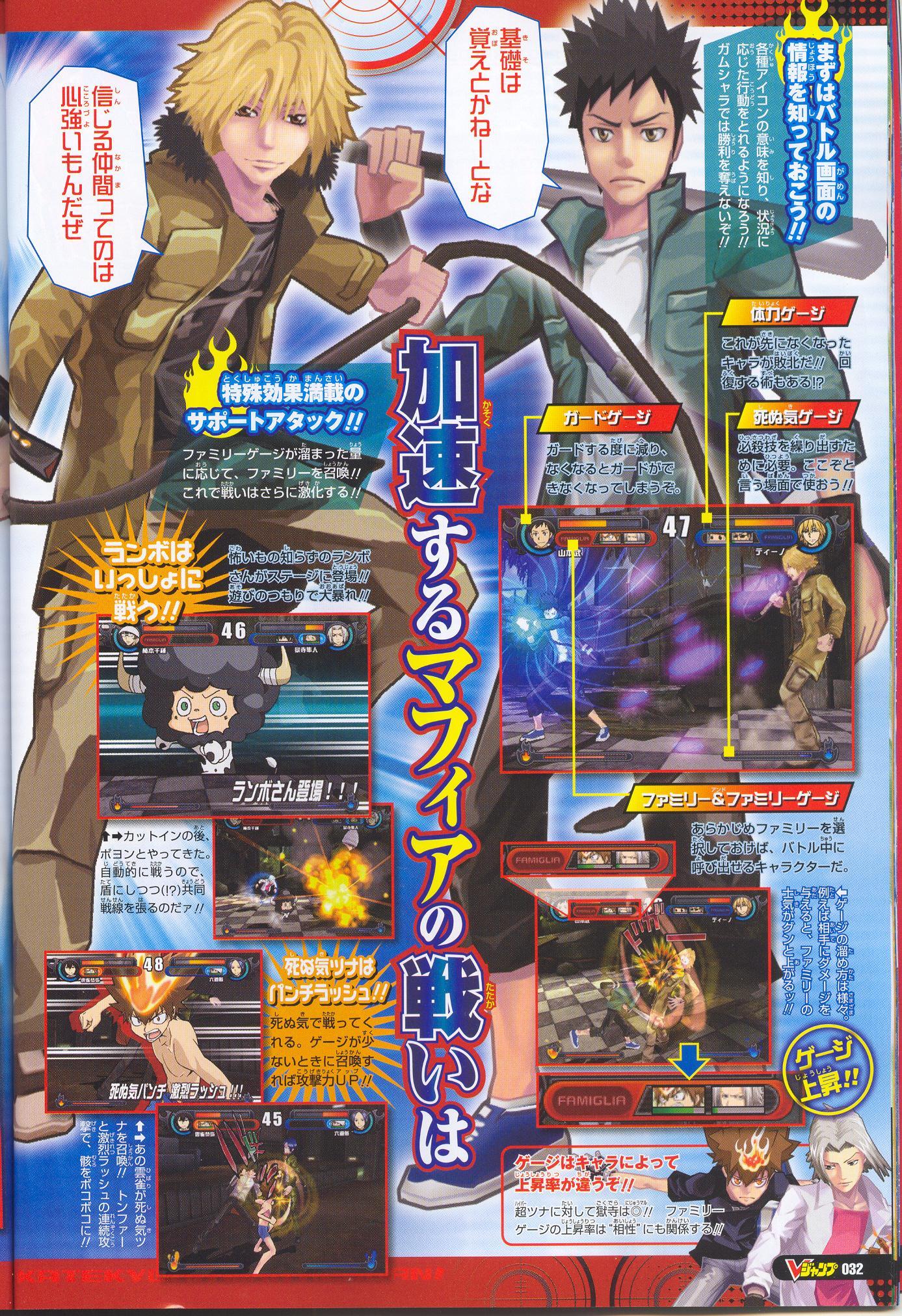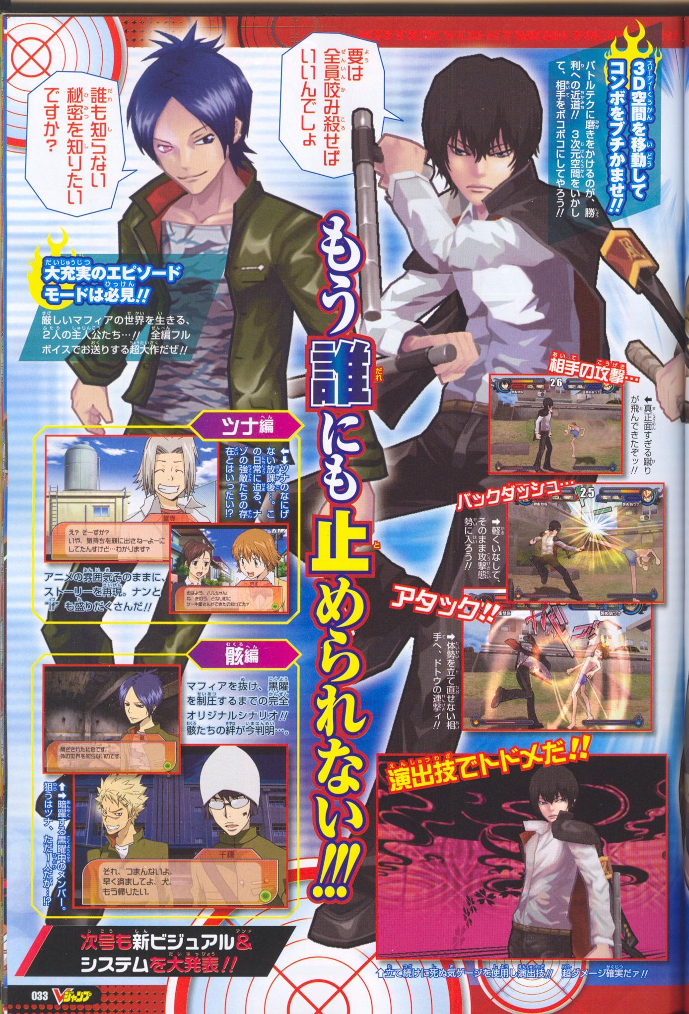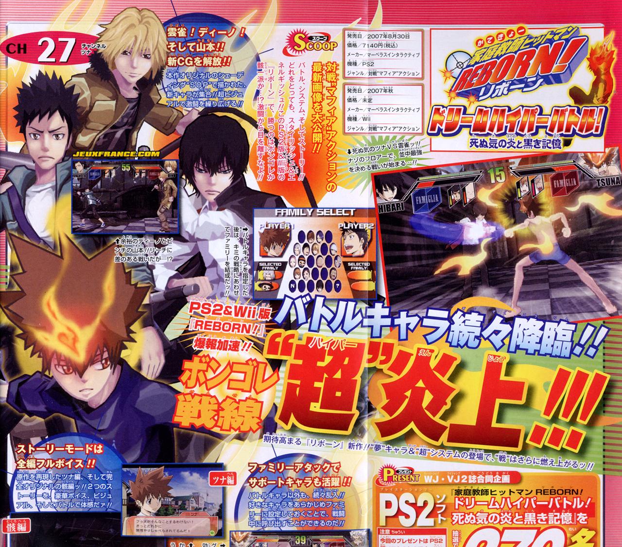 Voici quelques nouvelles images de Hitman Reborn ! Dream Hyper Battle, dévoilées via les dernières éditions du Shonen Jump et du V-Jump, deux magazines Nippons de renom !