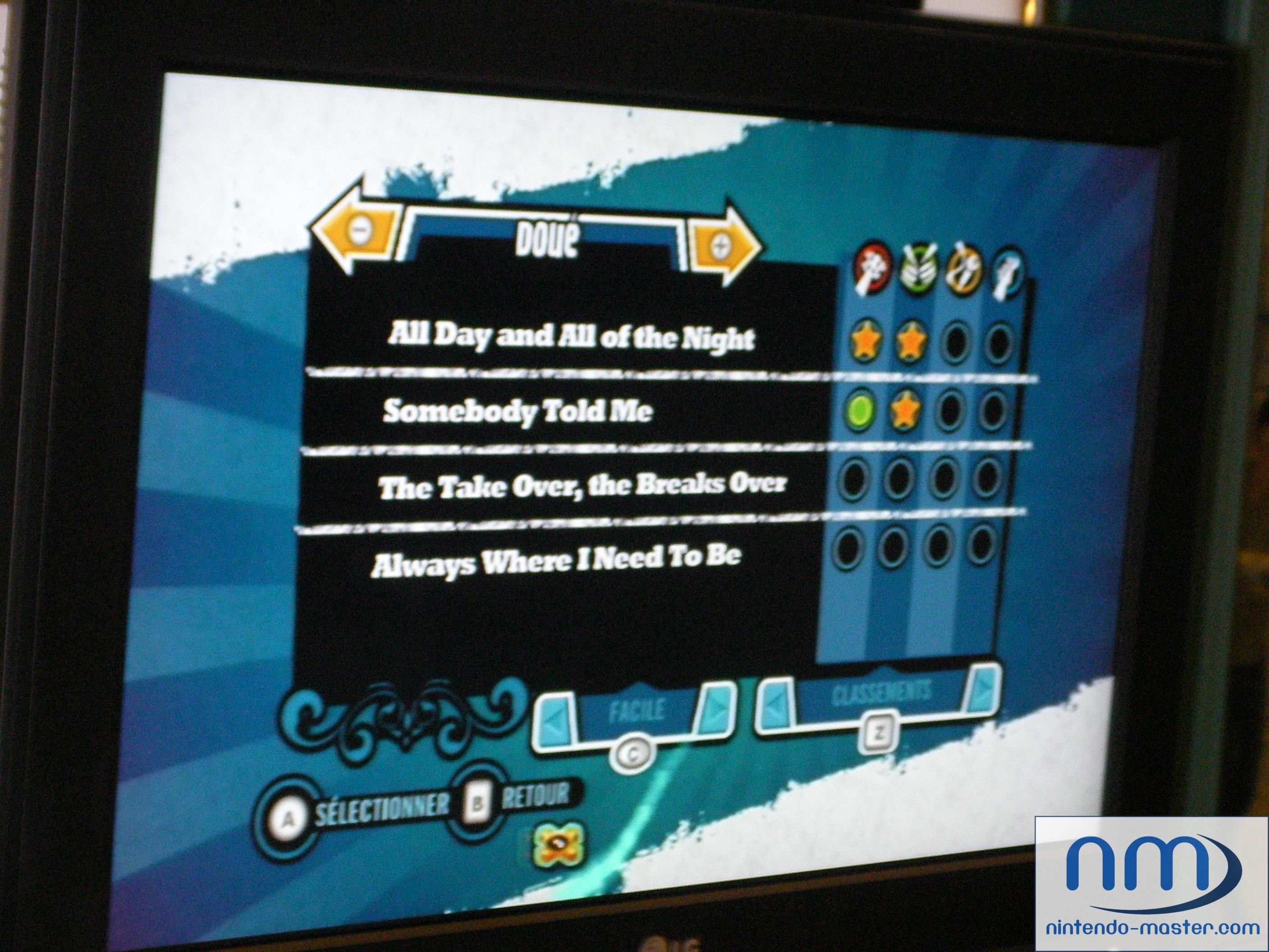 Vous aurez la possibilité, si vous êtes bon, de remplir une barre de puissance qui, une fois pleine, vous fera gagner des points si vous réalisez différentes figures avec la Wiimote. Plutôt marrant quand plus de deux personnes sont avec vous. Voyez donc Kraydepor se dandiner manettes en main !