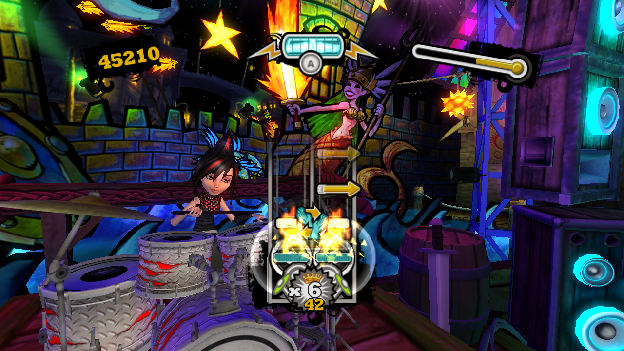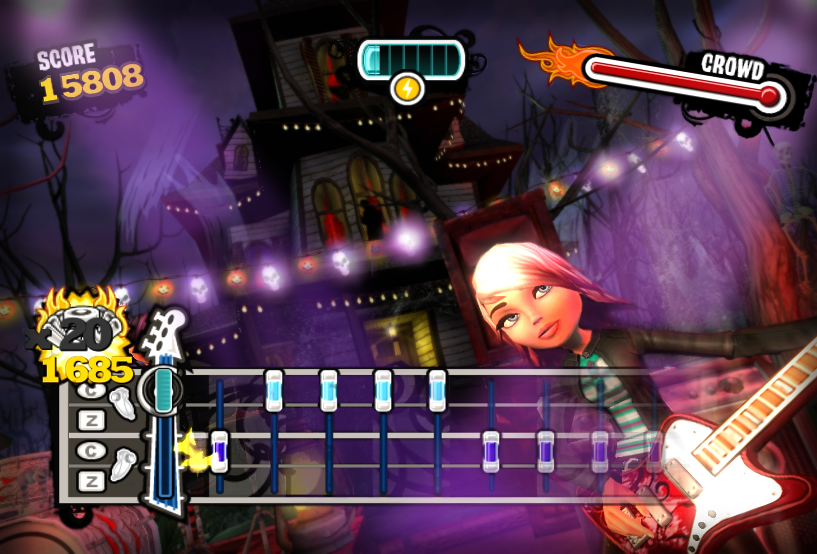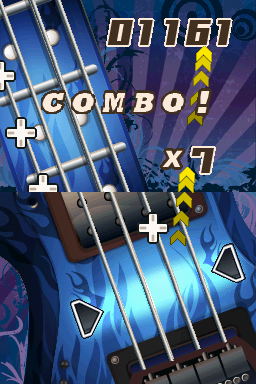 Une version DS était aussi en démonstration. Cependant cette version présente encore moins de difficultés et la lassitude s'installe rapidement alors qu'on cherche encore l'intérêt profond du jeu. Les interfaces basse/guitare/soliste (voir screens en fin d'article) se ressemblent terriblement et la batterie est infiniment simple. Ceci s'explique facilement. Loin de vouloir détrôner Guitar Hero, Fall Line Studio a créé un soft amusant et facile d'accès pour un jeune public.
