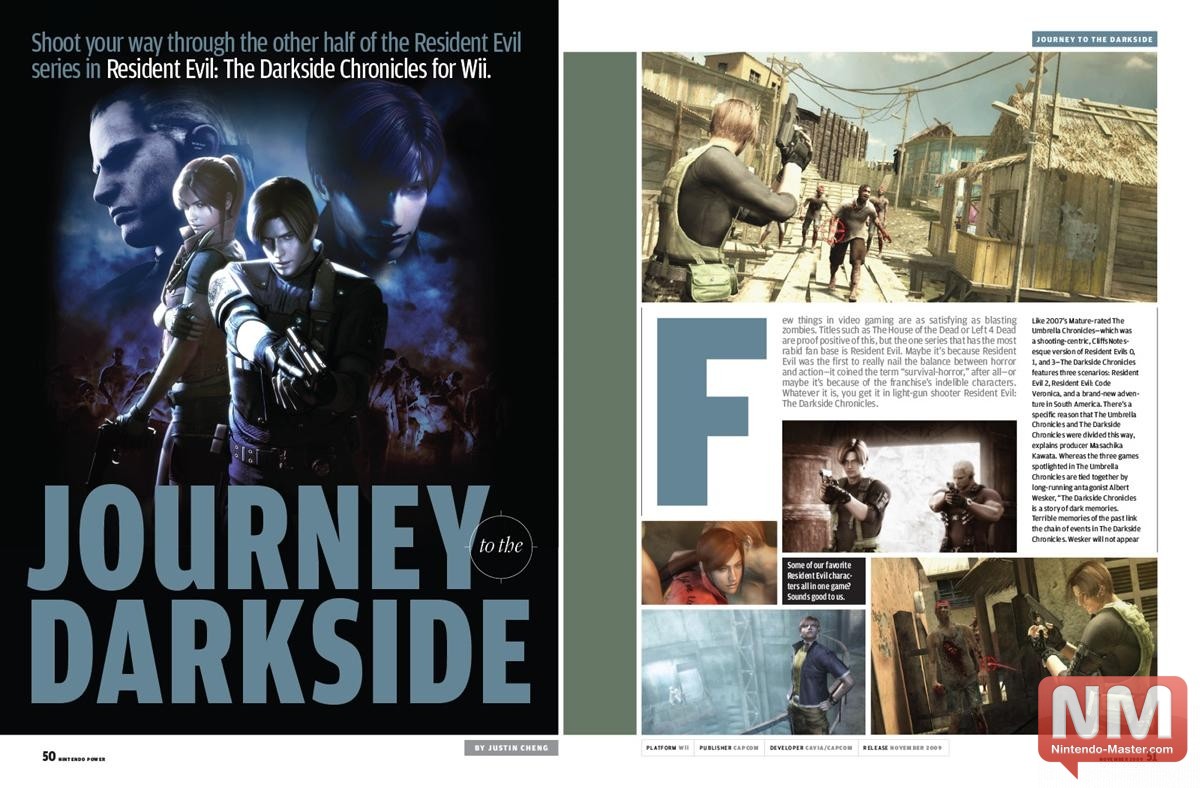 Capcom diffuse, via le magazine Nintendo Power, de nouvelles images de Resident Evil : The Darkside Chronicles. Malgré le peu de visibilité que nous avons, nous pouvons tout de même comprendre que l'on nous parle ici de l'Opération Javier. Cette dernière vous enmènera dans un village situé en Amérique du Nord avec nos compères Leon et Klauser. Pour votre gouverne, vous devrez libérer une certaine Manuela, seule jeune fille ayant échappé à l'éradication provoquée par le virus T.