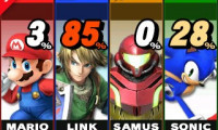 Vendredi : Revenons un peu vers la version 3DS : les pourcentages de dégâts apparaîtront sur l'écran tactile, de même que le nom du joueur dans le petit rectangle juste au dessus de l'image du personnage. Si vous touchez l'une des quatre images, le combattant concerné sera affiché comme cible, cette option pouvant également vous permettre de vous repérer vous-même.