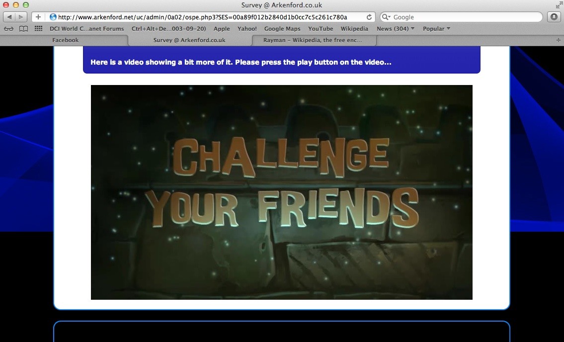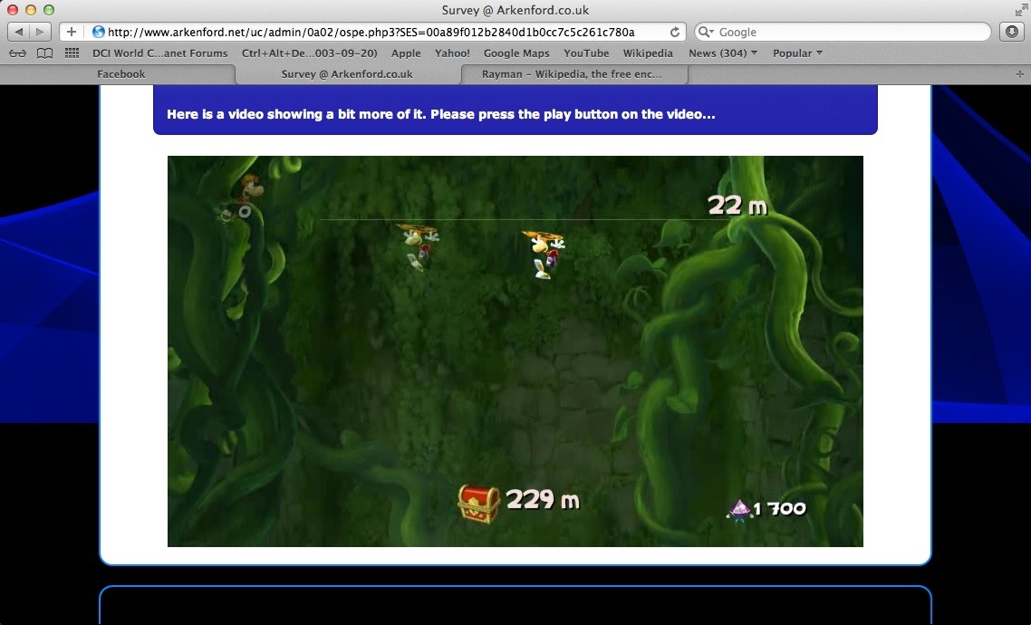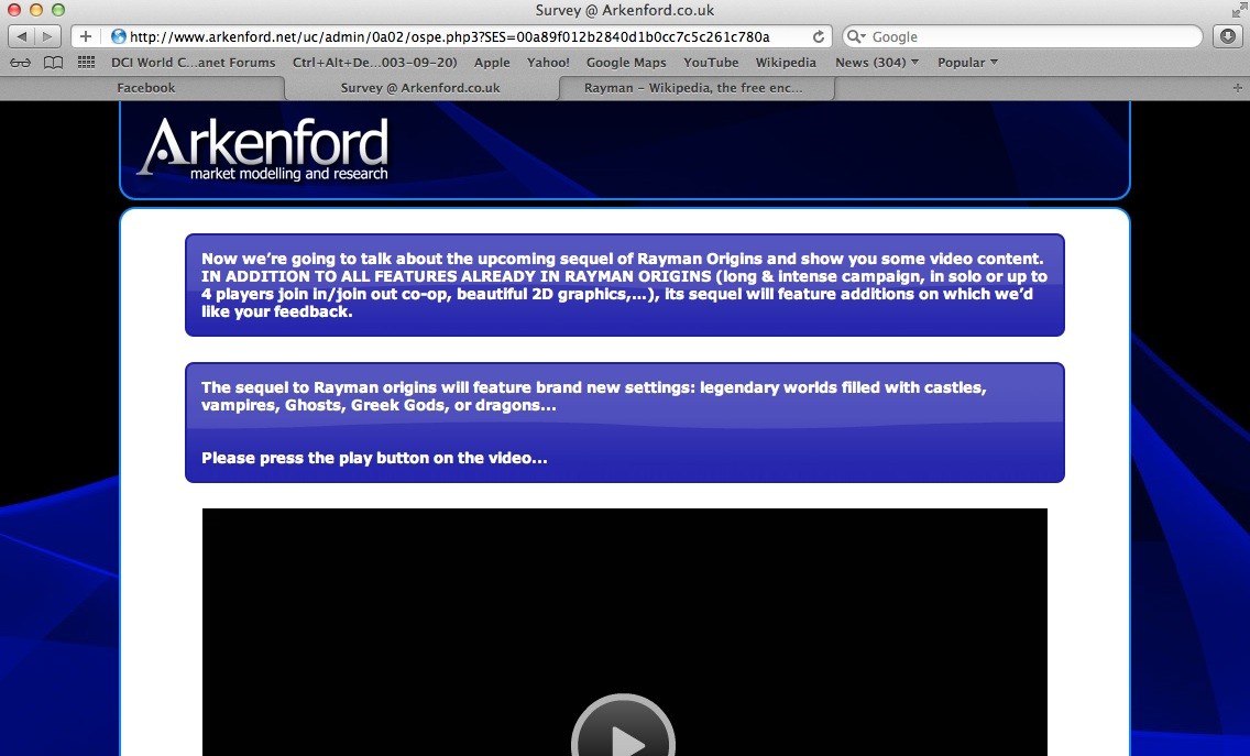 S'il n'a pas eu le succès qu'il méritait en termes de ventes, la toute dernière production de Michel Ancel pourrait se voir doter d'une suite prochainement. A en croire ces screens pris sur le site Arkenford, spécialiste de l'étude de marchés et dont Ubisoft est un client régulier, le studio français nous concocterait un Rayman Origins 2. Comme d'habitude, il nous faudra attendre une confirmation avant de nous emballer mais rappelons par exemple qu'Epic Mickey : Le Retour des Héros avait lui aussi fuité via un sondage.