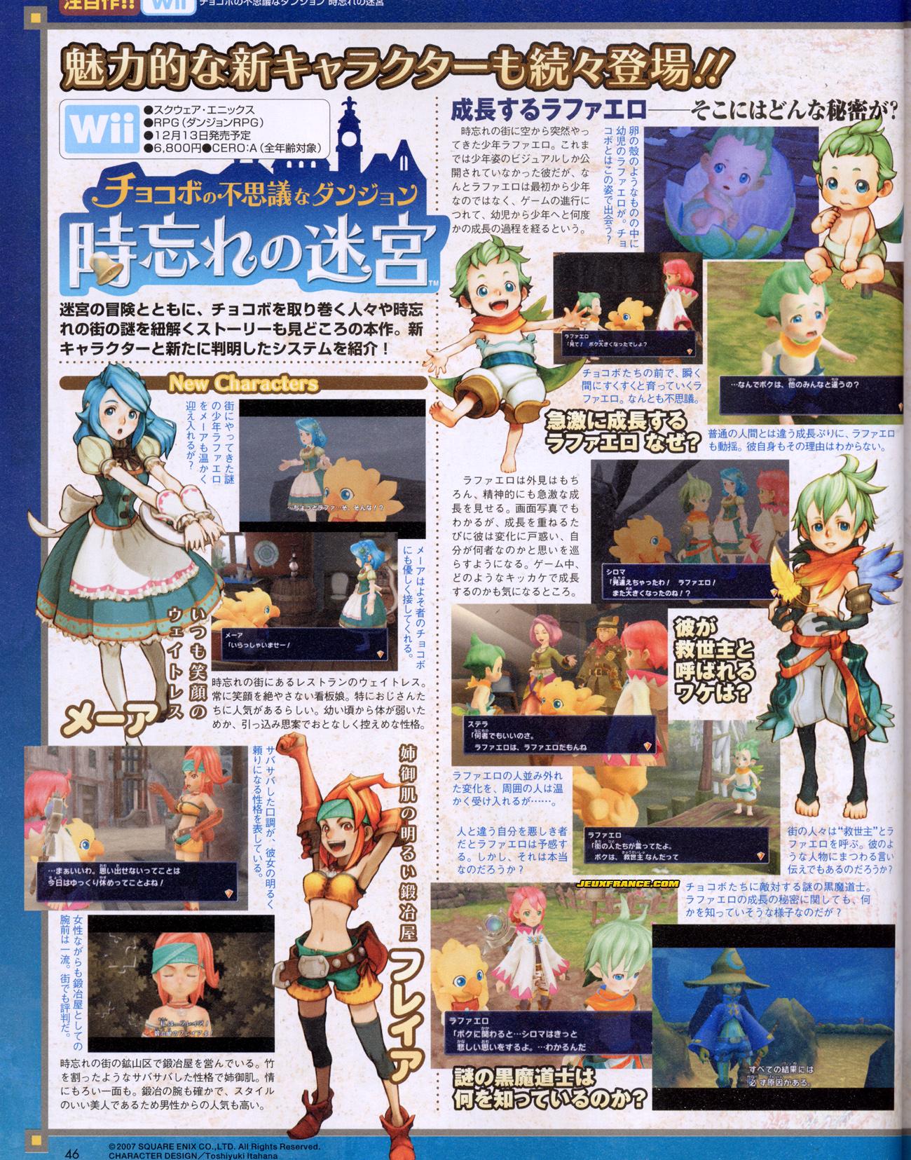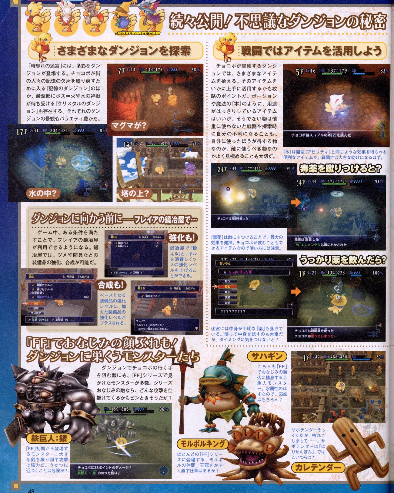 Toujours prévu pour le 13 Décembre au japon, Chocobo's Dungeon : Toki-wasure no Meikyuu se montre un peu plus via quelques scans.