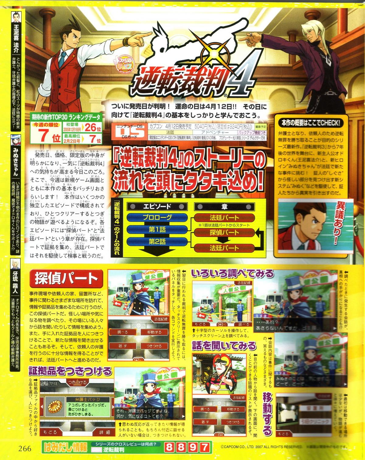Alors que Phoenix Wright 2 n'est même pas sortit en Europe, les Nippons plaideront bientôt sur le 4 :object: