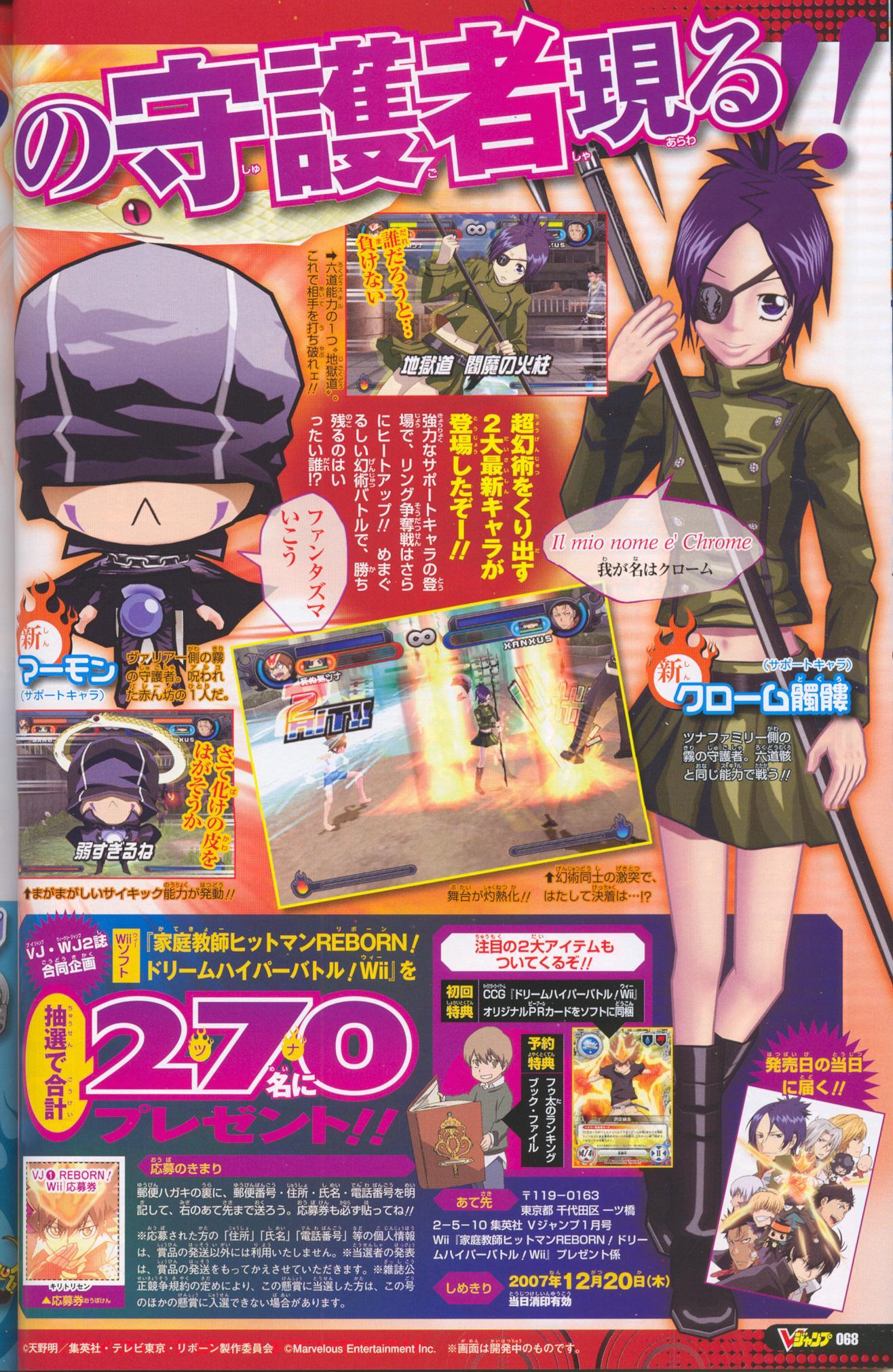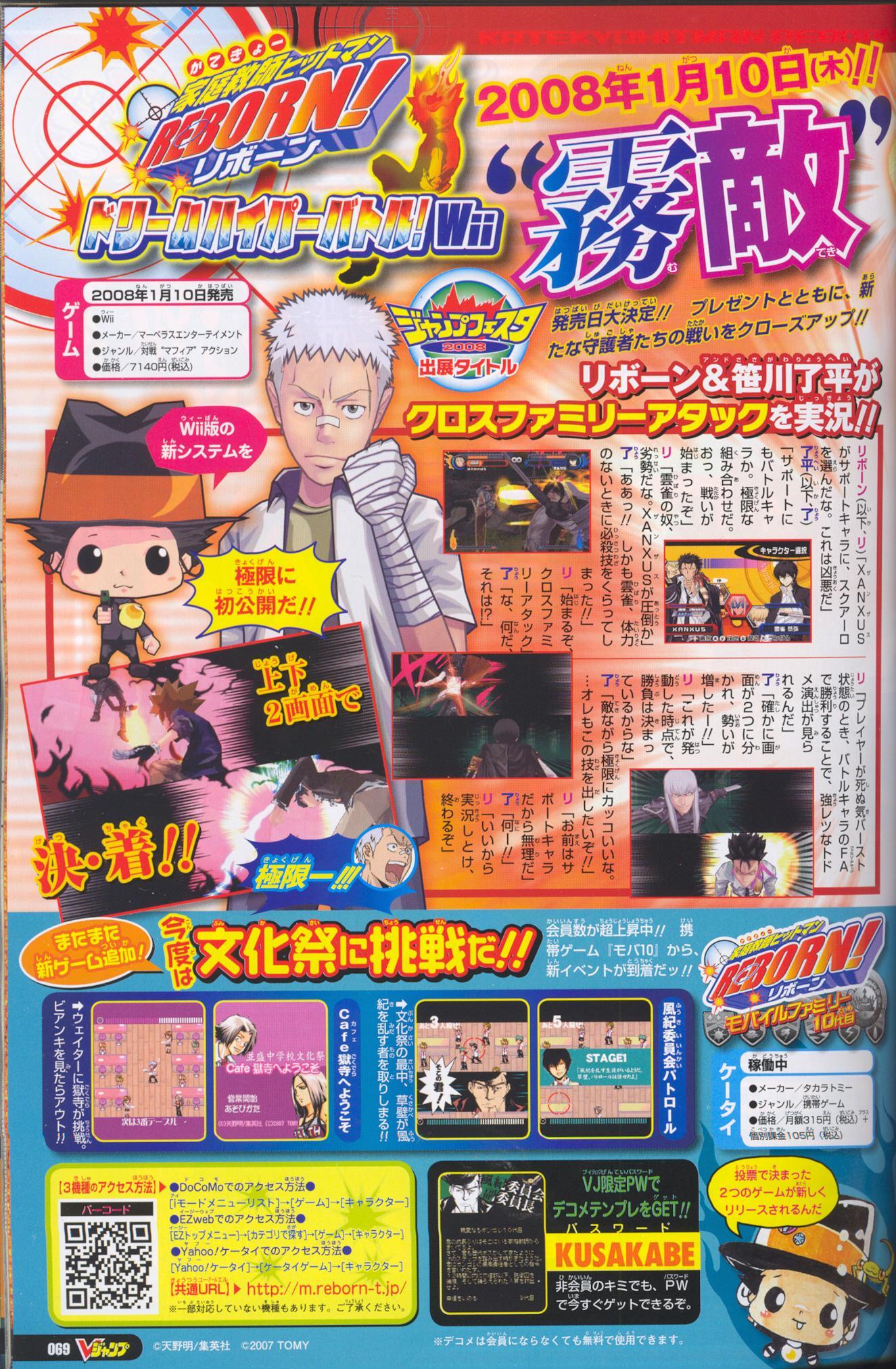 A travers les 15 personnages dispos, il faudra jouer de la Wiimote afin de terrasser tous vos opposants :) Hitman Reborn ! Dream Hyper Battle, adaptation du manga portant le même nom, sortira le 10 janvier de l'année prochaine au pays du soleil levant.
