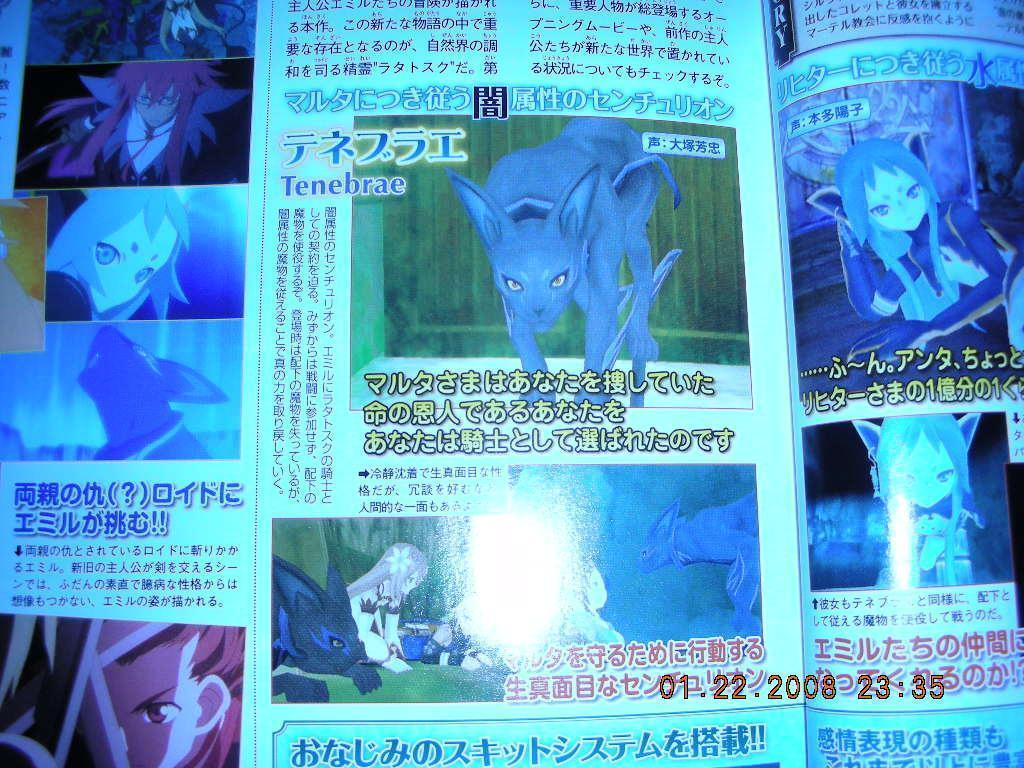 C'est au travers des pages du très connu magazine japonais Famitsu que nous découvrons de toutes nouvelles images (et peut-être informations pour ceux qui lisent le japonais?) de Tales of Symphonia: Knight of Ratatosk, suite de l'excellent opus sur Gamecube. Bref, voici les scans que vous attendez tant.