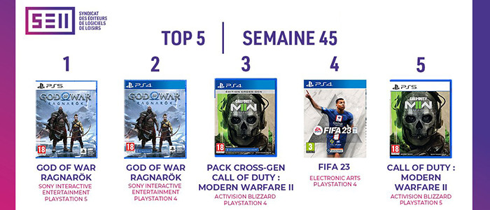 C'est une semaine qui s'est déroulée exclusivement sous l'étendard de Sony avec 3 licences fortes : God of War Ragnarok, Call of Duty: Modern Warfare II et FIFA 23. Vous trouverez le classement complet ci-dessous.