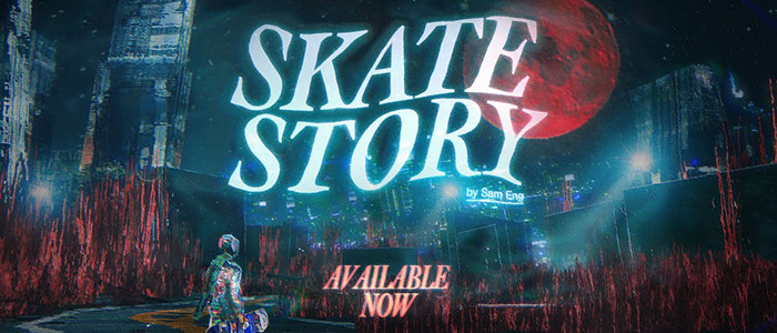- un jeu de skate narratif surréaliste où l’on enchaîne les figures chaloupées dans des rues psychédéliques et des paysages étranges remplis de ledges cirés, de gaps sataniques et de démons torturés.