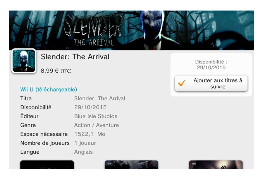 Slender : The Arrival est un jeu d'épouvante éprouvant qui arrive aux Etats-Unis sur l'eShop de la Wii U . Jouable au couple Wiimote-Nunchuck, avec la Wiimote simulant le faisceau de la lampe de poche du héros comme à la grande époque de la Wii, Slender : The Arrival semble parfait pour se faire une eptite frayeur à l'approche d'Halloween. Le titre est déjà sorti sur différentes plateformes en remportant toujours un grand succès populaire et critique. En attendant de savoir siSlender : The Arrival arrivera aussi en Europe avant la fin du mois, veuillez regarder ci-dessous le trailer de la version Wii U.