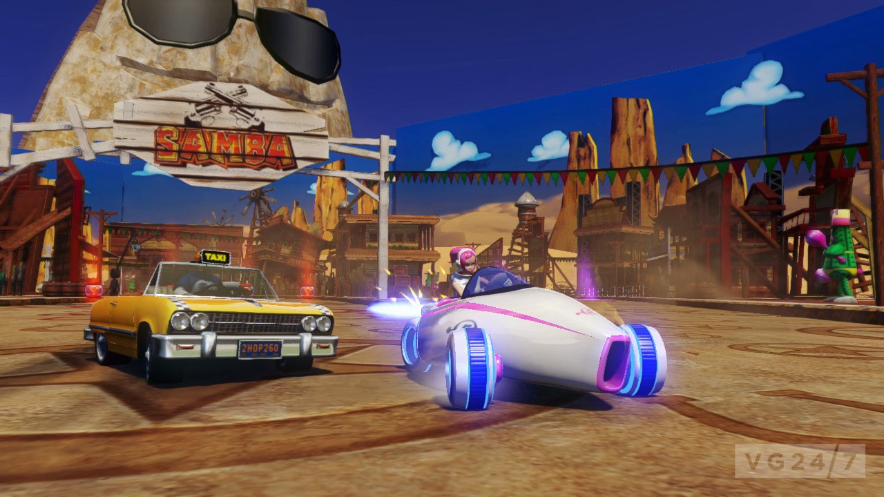Voici des images de deux invités très spéciaux : Danica Patrick (fameuse pilote de la NASCAR) et Ralph de Les Mondes de Ralph ! Si Ralph a déjà été aperçu dans d'anciens visuels, c'est la première fois que nous voyons Danica rouler dans les mondes Sega.
