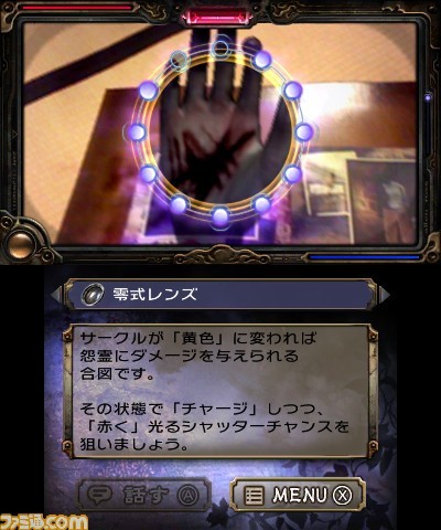 Depuis son annonce, l'impatience ne cessait de grandir concernant ce nouvel épisode spin-off de la série Fatal Frame, notamment pour son aventure basée sur la Réalité Augmentée. Nintendo met aujourd'hui fin à notre attente en nous proposant, via Famitsu, non seulement une vidéo mais également des images pour illustrer le tout. Personnes peu courageuses s'abstenir ! Les cartes de réalité augmentée permettront de faire apparaître divers esprits tous plus laids les uns que les autres, sans oublier les fantômes plus mesquins qui se cacheront tout autour de vous et que vous devrez débusquer grâce à la caméra de votre console, via un gameplay gyroscopique.