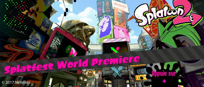 C'est au cours du Splatoon 2 Direct (à voir et revoir ici) publié hier, que Perle et Coralie, les deux nouvelles hôtesses du jeu ont annoncé la tenue du Splatfest World Première, le premier Festimatch du titre. Ce Festimatch aura en outre la particularité de se dérouler le 15 juillet 2017 soit une semaine la sortie du jeu ! Ainsi tous les possesseurs de Nintendo Switch pourront y prendre part ! Et si vous êtes impatients de reprendre vos rouleaux et vos (é)pinceaux, sachez que la démo est téléchargeable dès à présent sur l'eShop de la console. Vous pourrez vous essayer au didacticiel mais aussi vous balader dans le square de Chromapolis, flaner devant et même entrer dans les boutiques, farfouiller dans tous les coins et aussi essayer de) faire un dessin que vous pourrez poster (comme votre serviteur) Retrouvez ci-dessous nos pérégrinations dans Chromapolis avec les deux vidéos ci-dessous (version FR et JP)