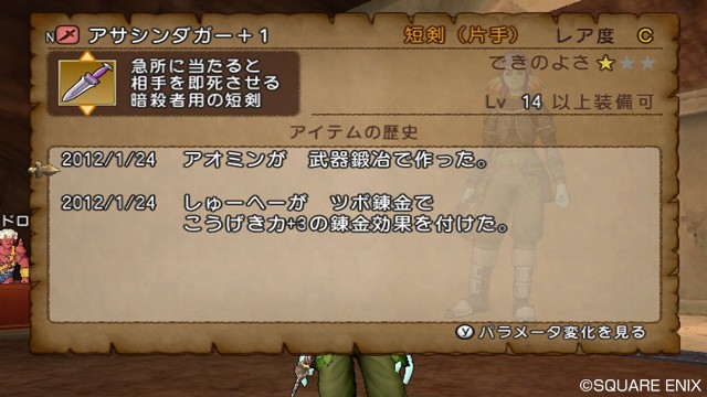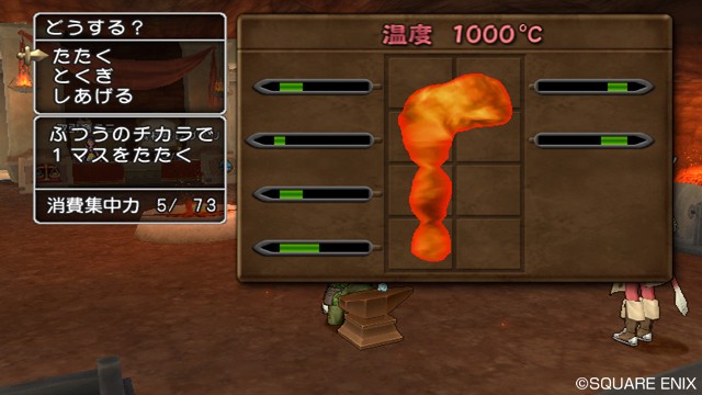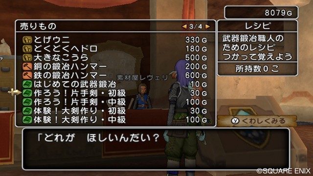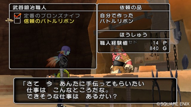 Pour avoir un emploi, il faudra aller s'inscrire à Maison de la Guide, cela marche un peu comme Pôle Emploi mais en beaucoup mieux, puisqu'on vous proposera un travail dès que vous aurez fait votre choix. Le chômage, ça n'existe pas dans Dragon Quest X Online ! Bref, revenons-en à la création des items. Pour en fabriquer, vous aurez besoin de recettes que vous pourrez acheter dans les boutiques ou trouver dans des coffres et zones secrètes. Naturellement, les objets trouvés dans ces lieux seront plus rares et donc plus intéressants. Une fois que c'est fait, vous pourrez créer les objets de vos rêves via un mini-jeu.