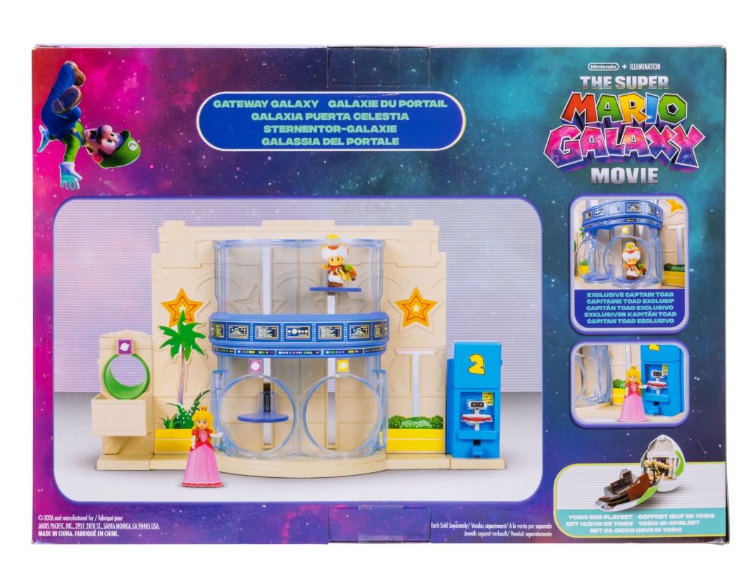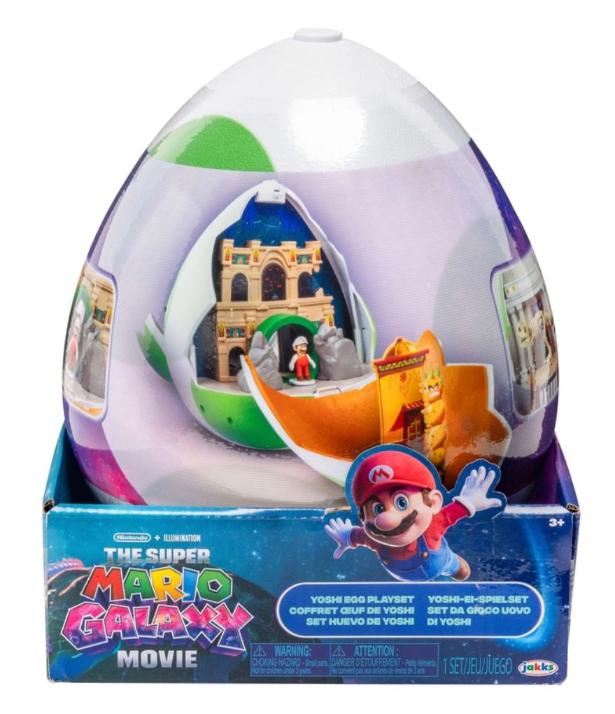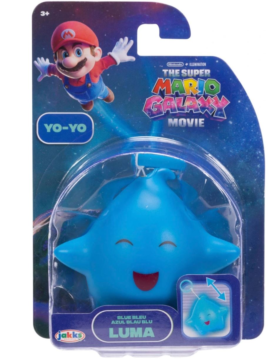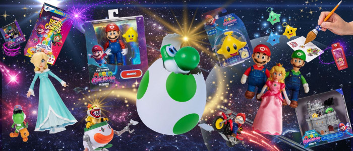 Parmi les nombreux jouets prévus au lancement, on retiendra notamment le mini château du mini bowser, les yoyos Luma ou encore le Yoshi "parlant" qui sort de son oeuf. Retrouvez sur cette page différents produits estampillés SUPER MARIO GALAXY, Le Film, vendus notamment chez Smyths Toys