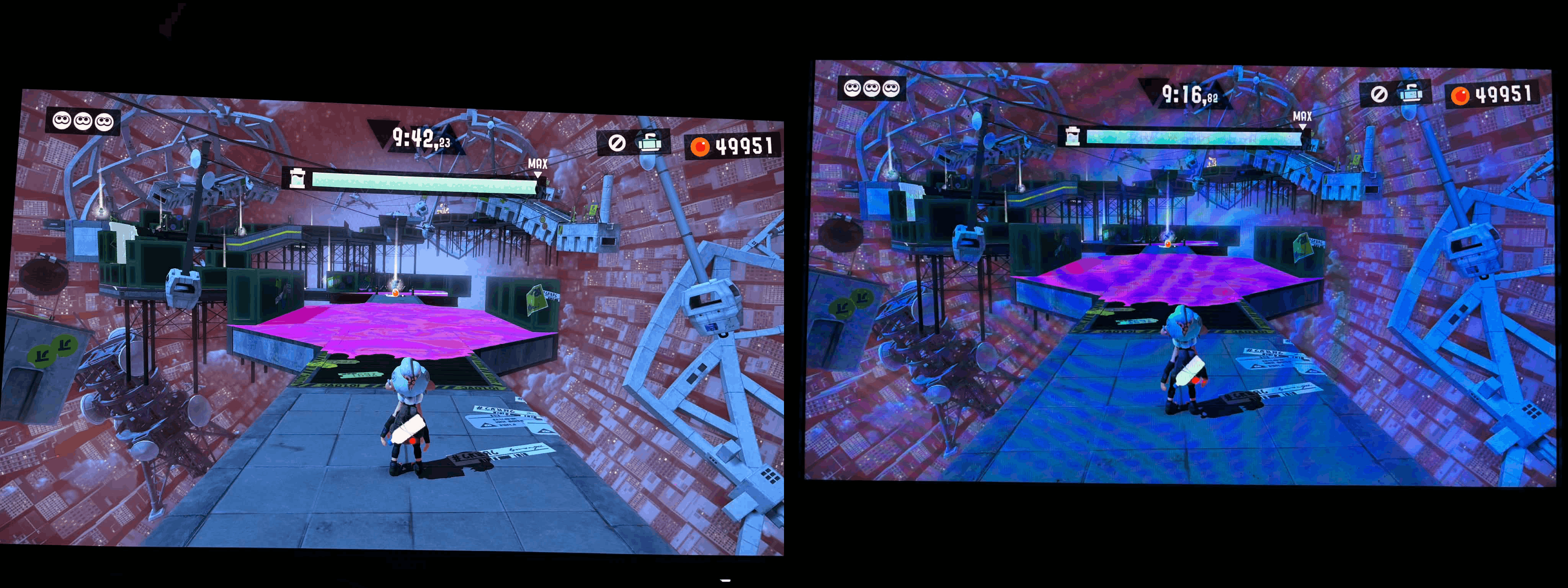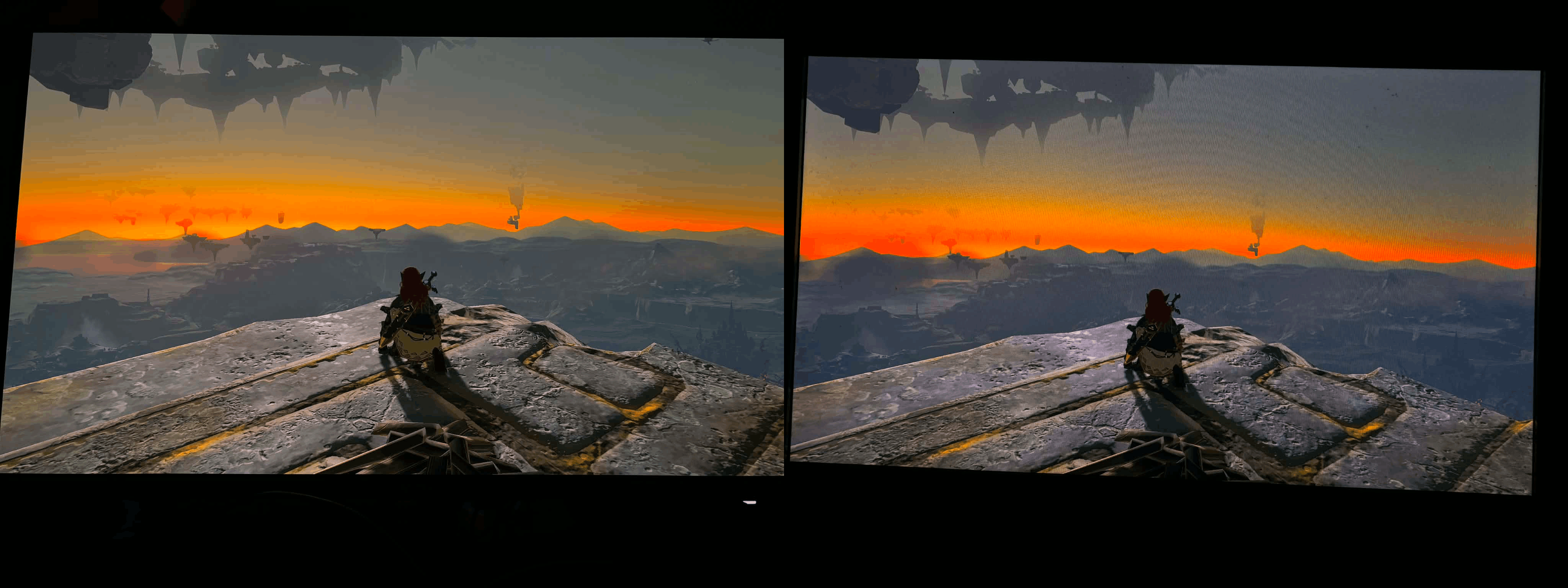 Sur Hades II, j’ai redécouvert la beauté du jeu, de ses environnements et la profondeur de ses noirs. Sur The Legend of Zelda: Tears of the Kingdom un simple coucher de soleil, déjà magnifique sur version Nintendo Switch 2 se transforme en émerveillement. Sur Splatoon 3, la sensation d’une peinture plus dense et plus tangible est encore accentuée par ce rendu particulièrement marquant. Ces jeux, très contrastés et très colorés, semblent taillés pour ce type de dalle. L’image ne cherche pas à en mettre plein les yeux, elle gagne surtout en lisibilité et en cohérence.