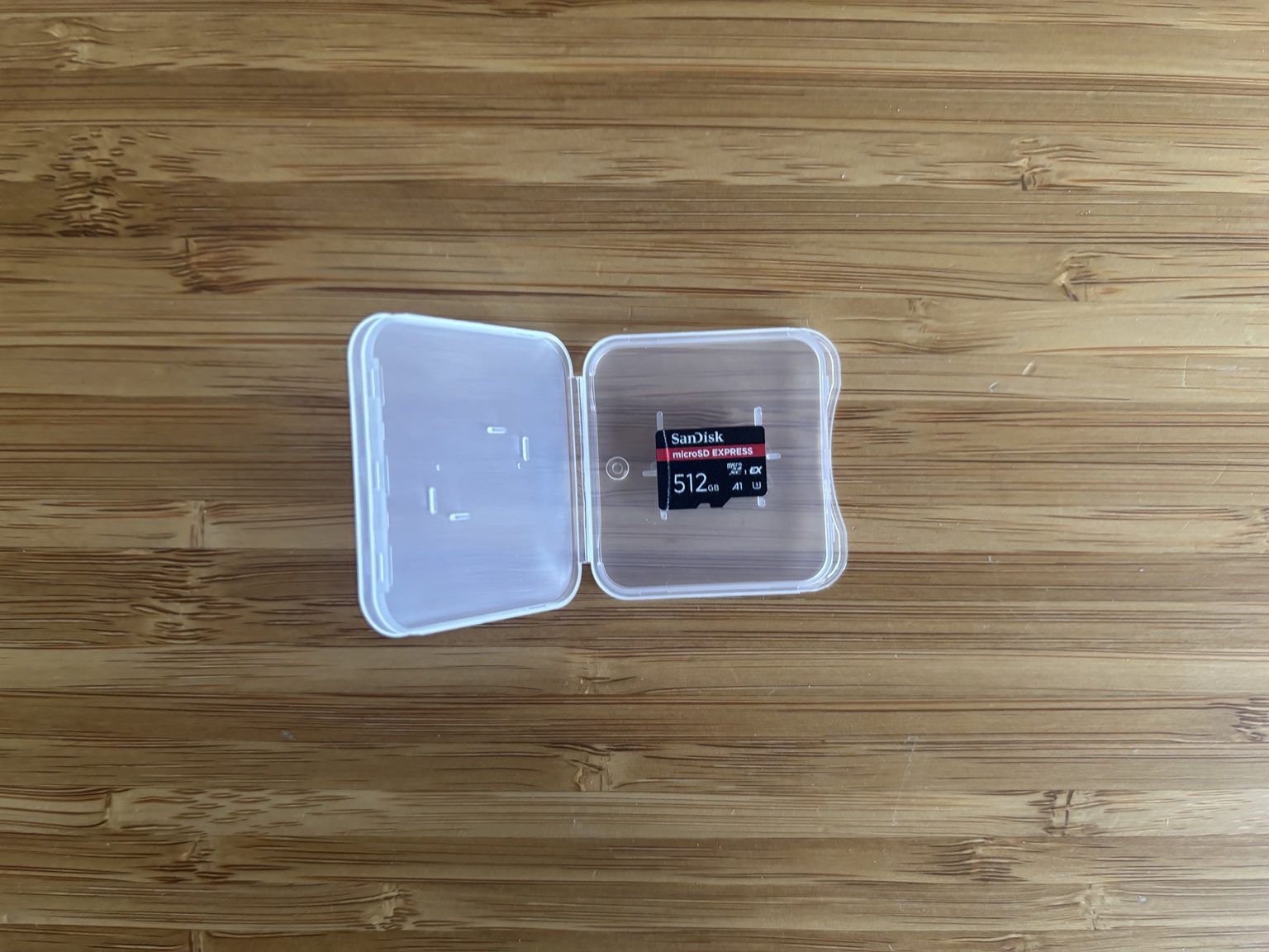 Le premier contact avec la carte est volontairement sobre. Le packaging reste minimaliste mais efficace : la carte est protégée dans un petit étui plastique, lui-même inséré dans un emballage carton discret. C’est un détail, mais cet étui est plutôt pratique. On peut facilement le conserver pour stocker une autre carte mémoire plus tard, ce qui n’est jamais inutile quand on manipule régulièrement ce type de support.
